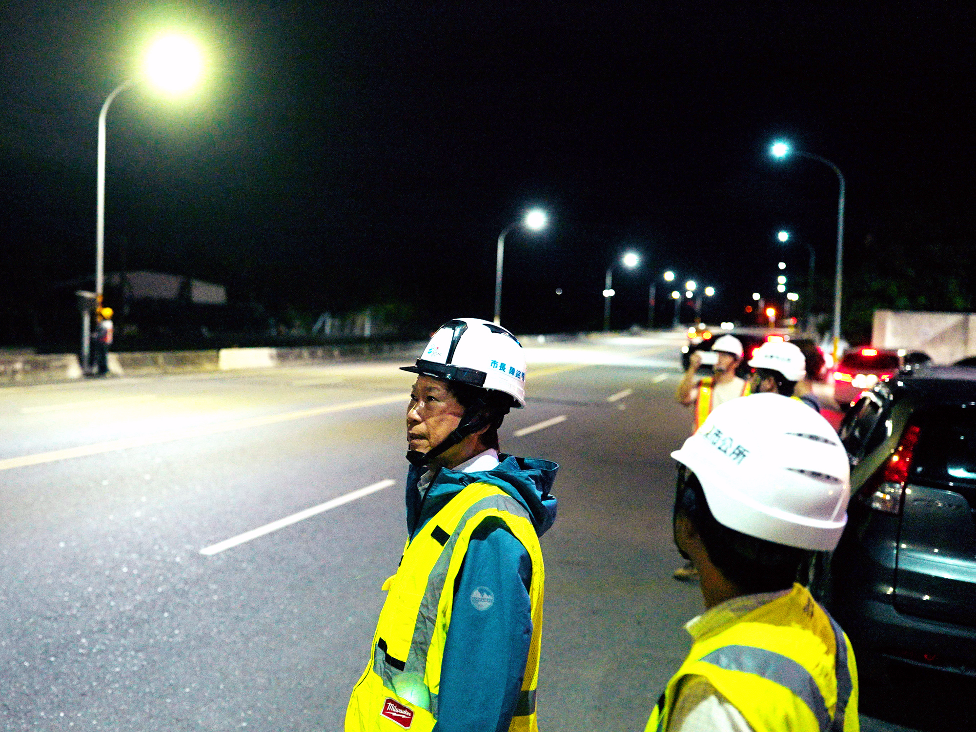 台東市公所市區路燈設施改善工程,第一期工程完工,五日晚上正式啟用,市長陳銘風會勘路燈啟用情形,強調路燈改善工程全面改採高效率LED燈具,將提升行車安全並降低能源消耗。