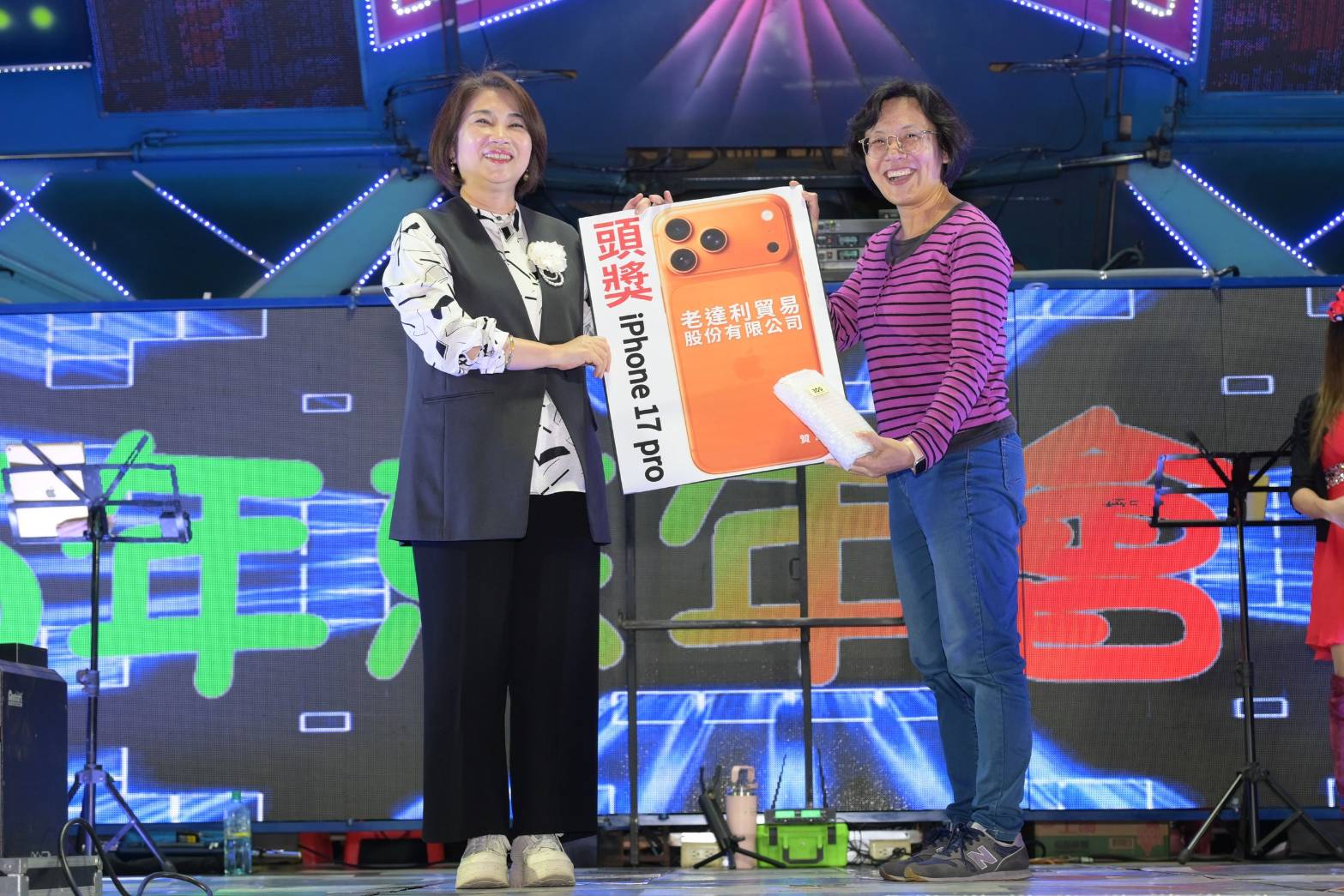 忘年會現場除安排精彩表演節目外,也規劃多項摸彩活動,其中最受矚目的首獎為八支iphone17pro,將全場氣氛推向最高潮。