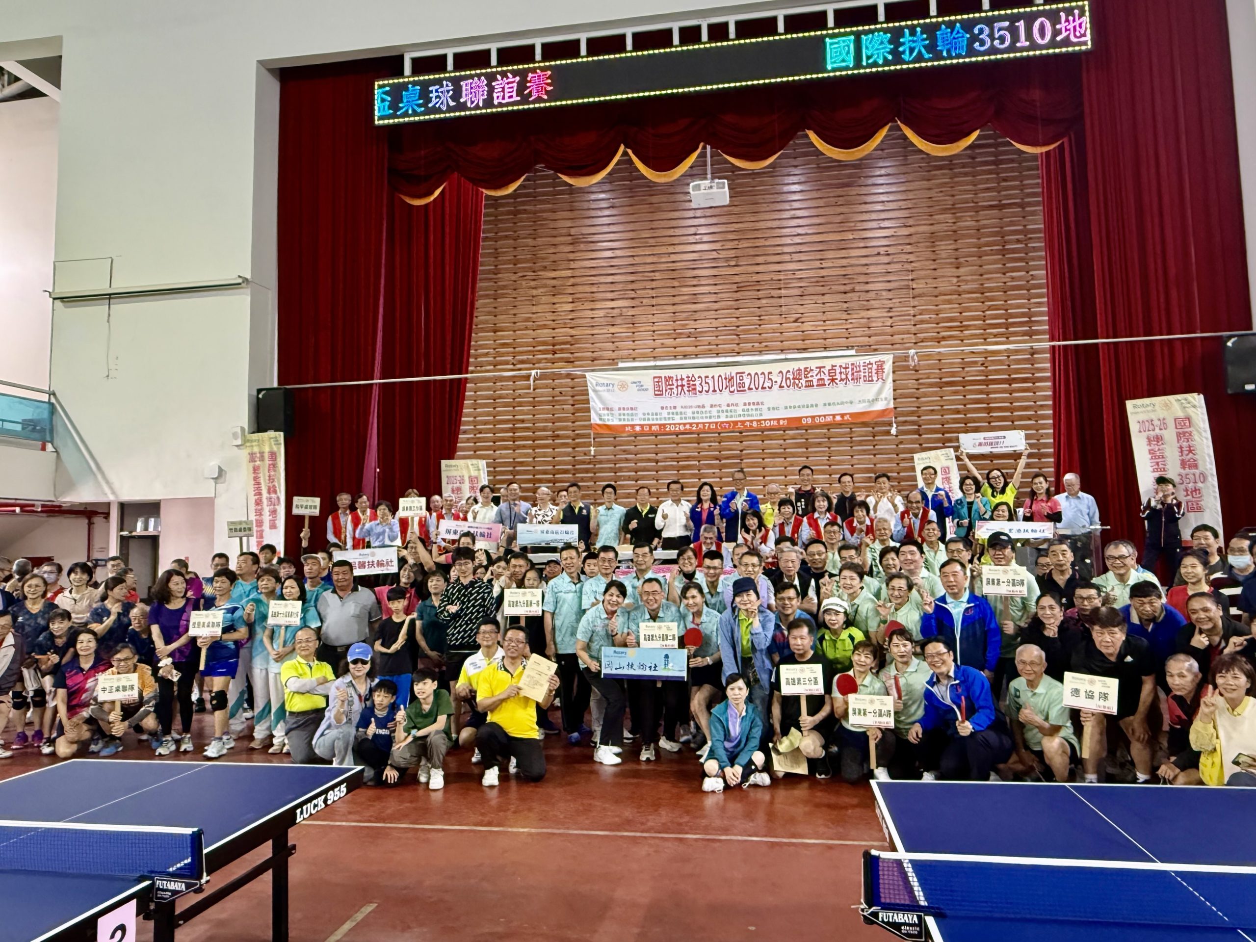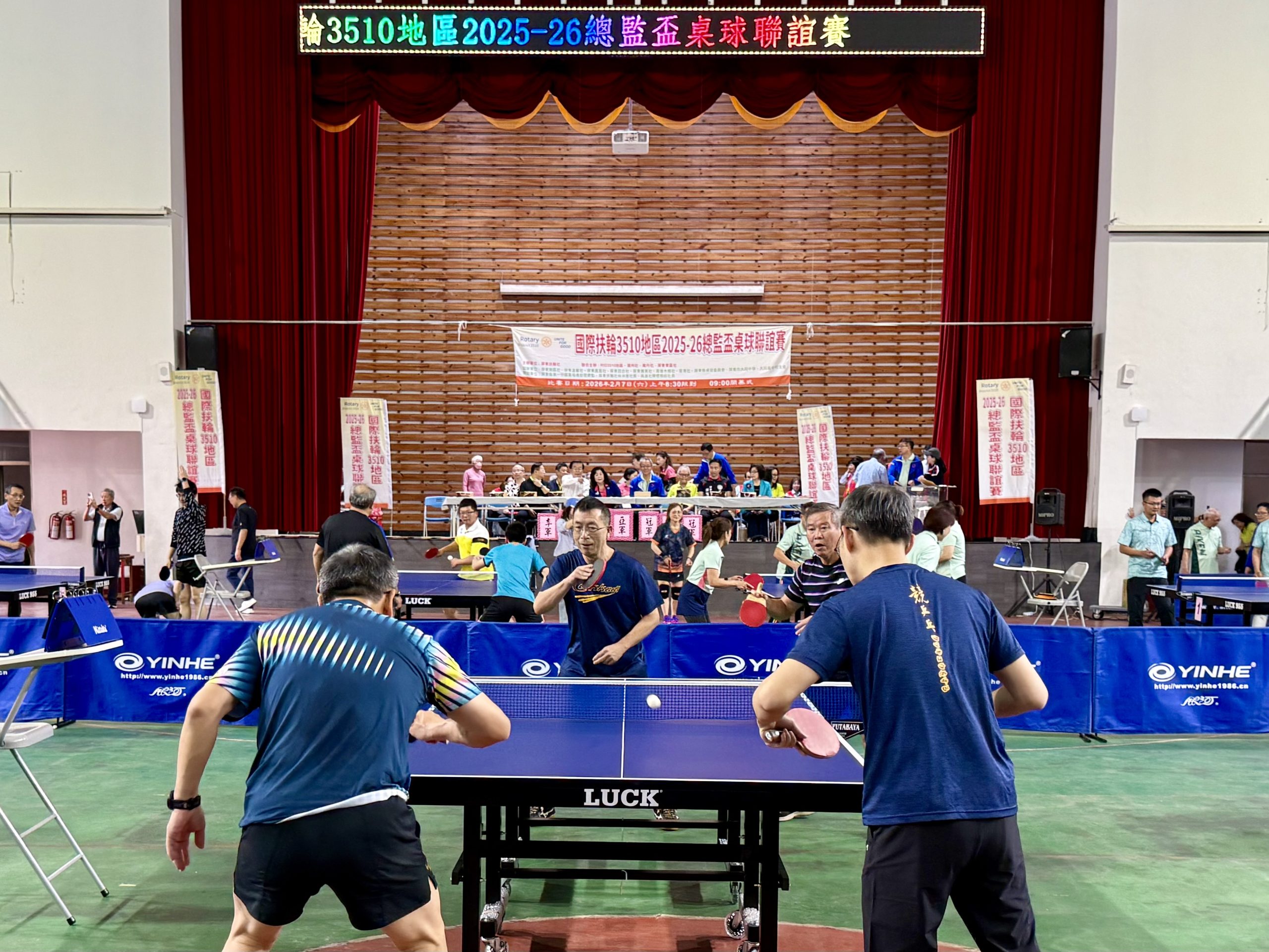 國際扶輪3510地區2025-26年度總監盃桌球聯誼賽,二月七日上午九點在屏東大同高中活動中心盛大舉行,在國際扶輪3510地區邱綉惠總監、主辦社屏東社林坤憲社長及來賓致詞以及大合照後展開,各隊選手先禮後兵,大展身手進行激烈廝殺, 成功藉由桌球運動、切磋球技,促進各分區社友之間的聯誼。李清聖總幹事表示,今年共有扶輪社組七隊,社團組六隊,比上次隊伍增長約三成。