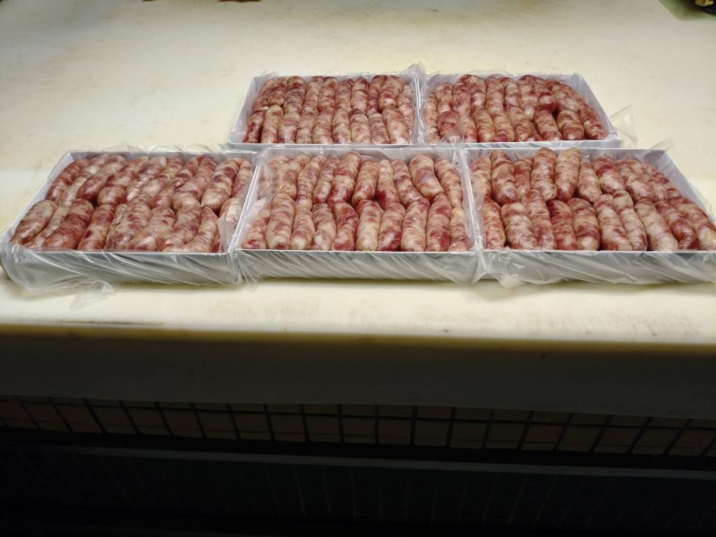 去除豬肉的筋膜後,香腸口感更加汁多、軟嫩,深受老少喜愛。(記者張淑娟攝)