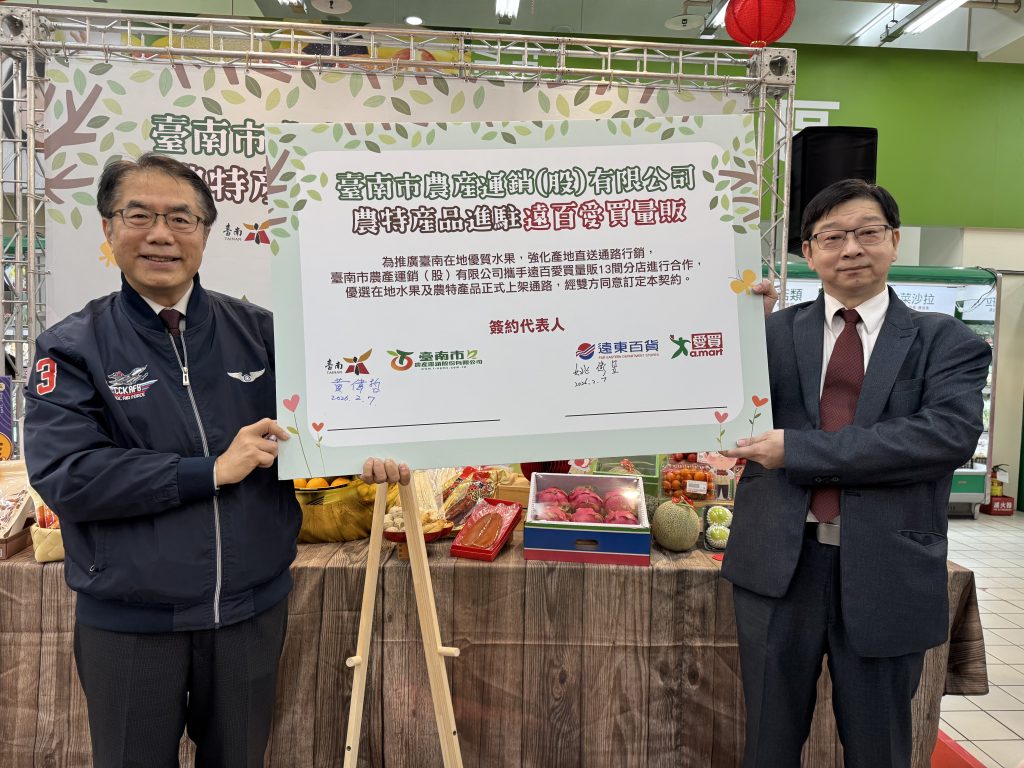 遠東百貨副總經理陳佑任表示,遠百愛買已與台南市政府完成合作備忘錄(MOU)簽署,將於全台13家愛買量販門市上架推廣臺南優質農漁產品,讓消費者能就近選購品質新鮮、價格實惠的台南好物。此次活動除於板橋、桃園等門市推廣外,也配合年節採買需求,提供多元農特產品作為年貨與年菜選擇。愛買營運長姚偉昱也進一步說明,未來愛買將依季節規劃持續辦理展售與推廣活動,優先引進最新鮮的台南農產,並逐步擴大合作品項,讓更多北部及全台消費者,都能在愛買通路輕鬆購買到台南最優質的農特產品。