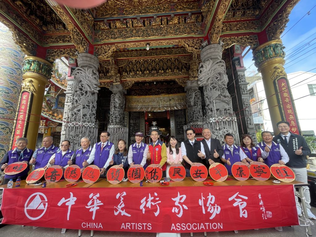 七日上午,安平觀音亭主委顏東賢、台南市議員林美燕,南市府副秘書長徐健麟以及中華美術家協會王海峰會長,並由黃水源副社長、楊坤煌社長、吳龍寶常務理事、徐國棠總顧問、羅慧理事長、吳俊泰董事長、洪賜隆社長及張菽芳老師等共同參與開筆儀式,正式為贈春聯活動揭開序幕,現場也不乏信眾早早到場排隊,廟埕排起人龍。