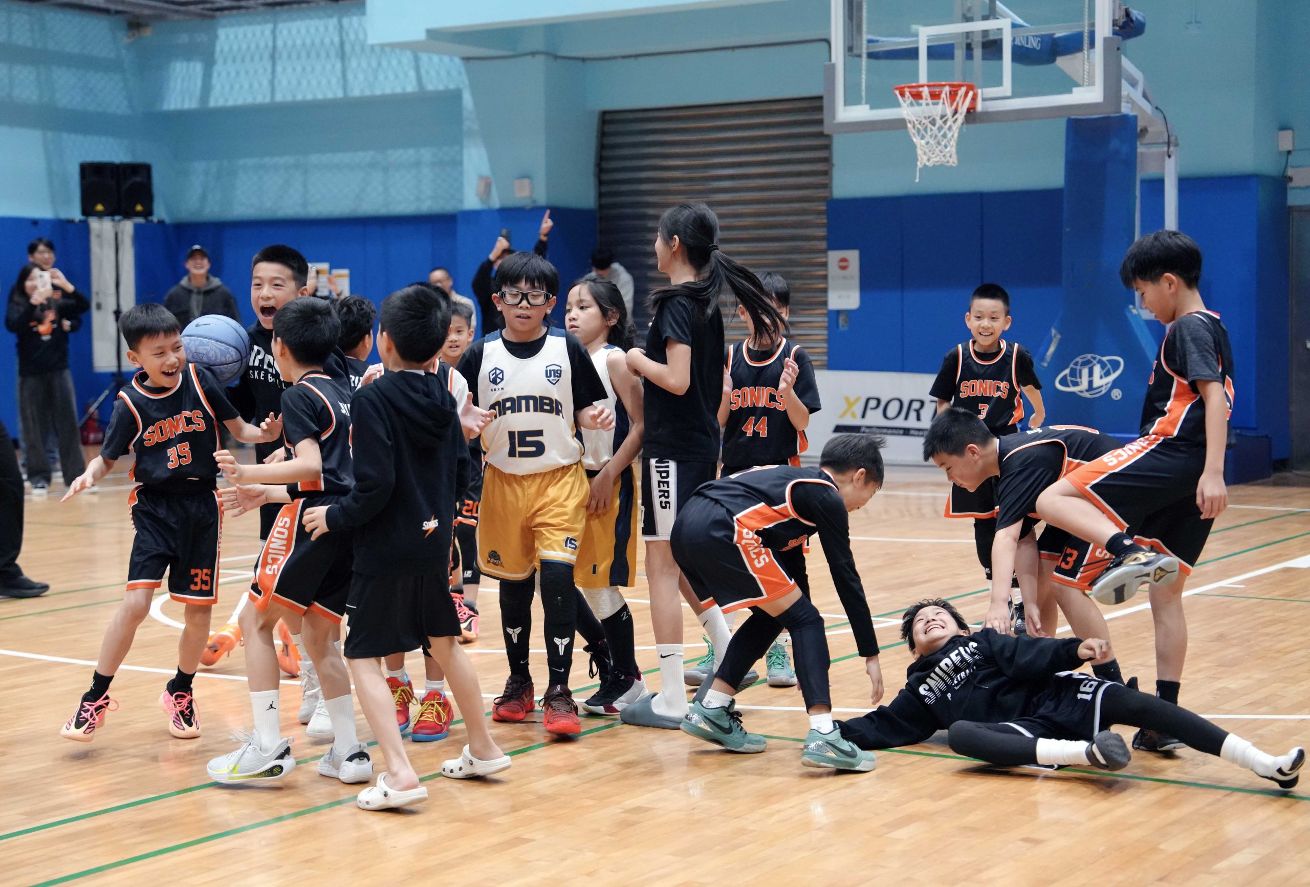 Sonics勇奪上半季冠軍,全隊衝上場開心慶祝。(U19籃球聯盟提供)