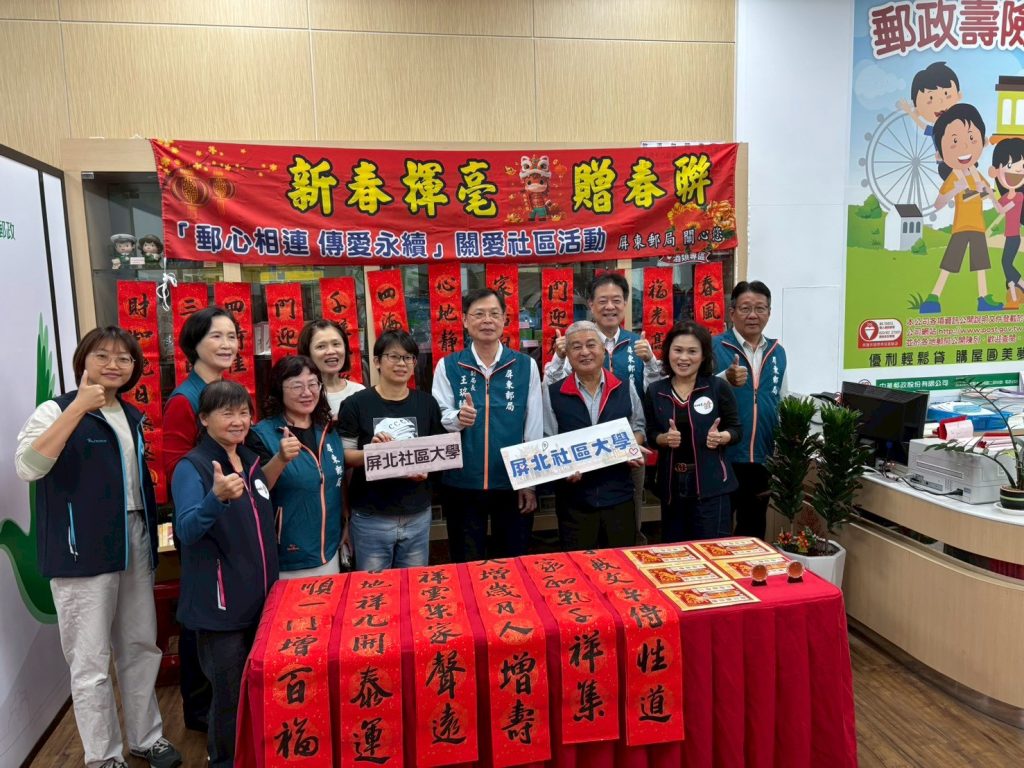 屏東郵局王副局長表示,台灣人習俗上過年前都會將家門口的舊春聯給換新,代表新的一年到來。現在的春聯大多都是工廠印刷製作,少了以前毛筆書寫的人情味;郵局長久以來給人的感覺就是好鄰居、老朋友這麼親切,就像親手寫的春聯一樣溫暖,中華郵政舉辦新春揮毫贈春聯活動,除了要感謝客戶這一年來的支持與愛護,也祝福大家「馬」年如意。