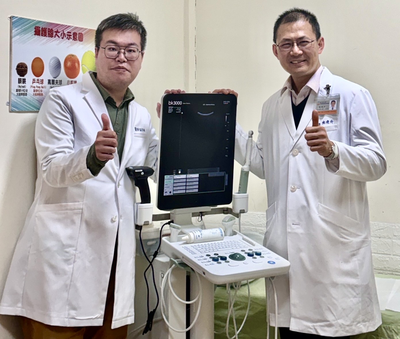 泌尿科主任陳建升經使用超音波掃描膀胱時,赫然發現膀胱有一顆二點五公分大的結石,安排病患住院接受內視鏡手術,手術順利將結石擊碎並取出,病患順利出院後,就沒有解尿時的不適感了。