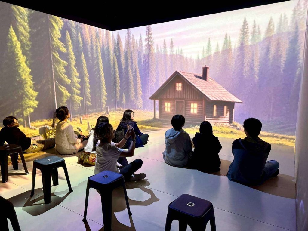 面對AI浪潮,中原大學人文與教育學院以美感教育為起點,近日建置完成「MetaDisplay教室」,把沉浸式投影與人機互動導入課程,打造虛實融合、跨域共作的智慧學習場域,讓人文與科技彼此「融滲」。以應華系大四畢業專題為例,學生將唐詩《春望》轉化為沉浸式影像情境,協助外籍學習者掌握詩中意象與情感,讓AI回到以人為本的學習設計,展現人文素養結合數位科技的教學新樣貌。
