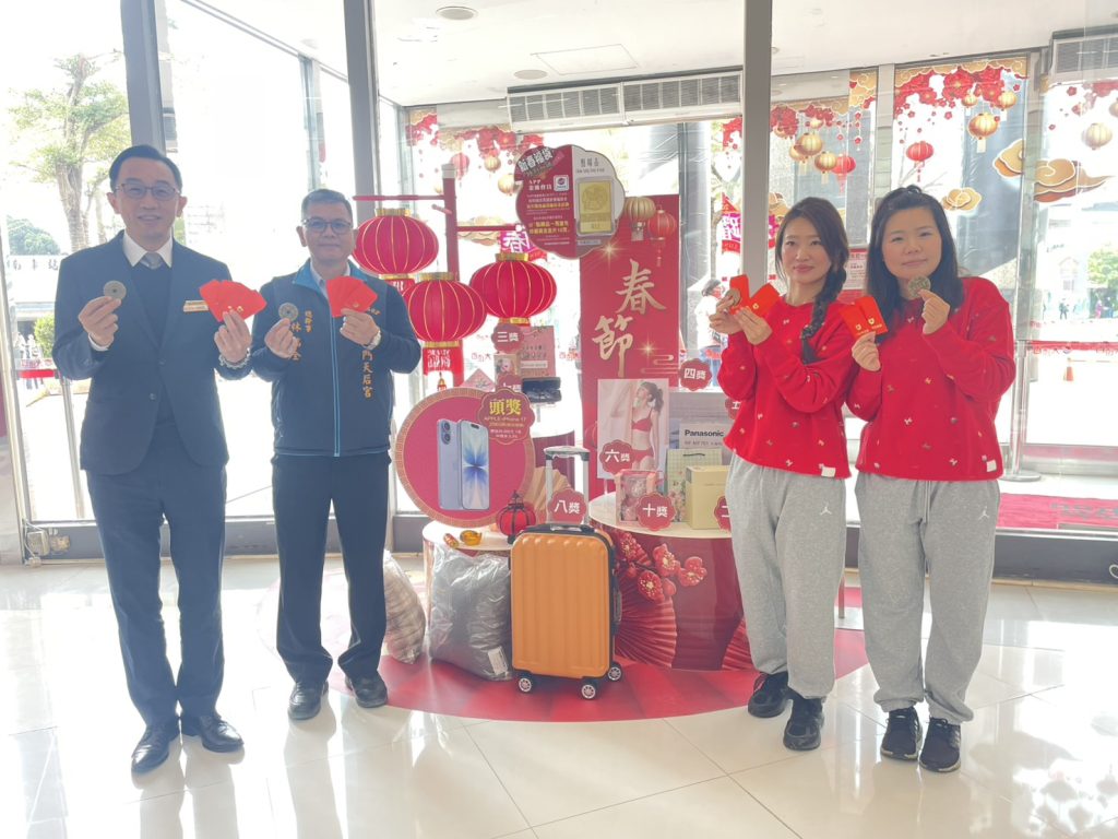 台南大遠百大年初一上午於大門口發放號碼牌,限量推出新春福袋,內容包含等值商品券與餐飲券,主打「袋袋回本、雙重好運」,購買者還可參加抽獎活動,為新的一年添好彩頭。遠百APP金級會員當天購買福袋,還能獲得參加全台抽黃金活動資格,全台名額五名,有機會抽中重量十克,市值高達六萬多元的珍藏黃金金片,替開春財運再加碼。