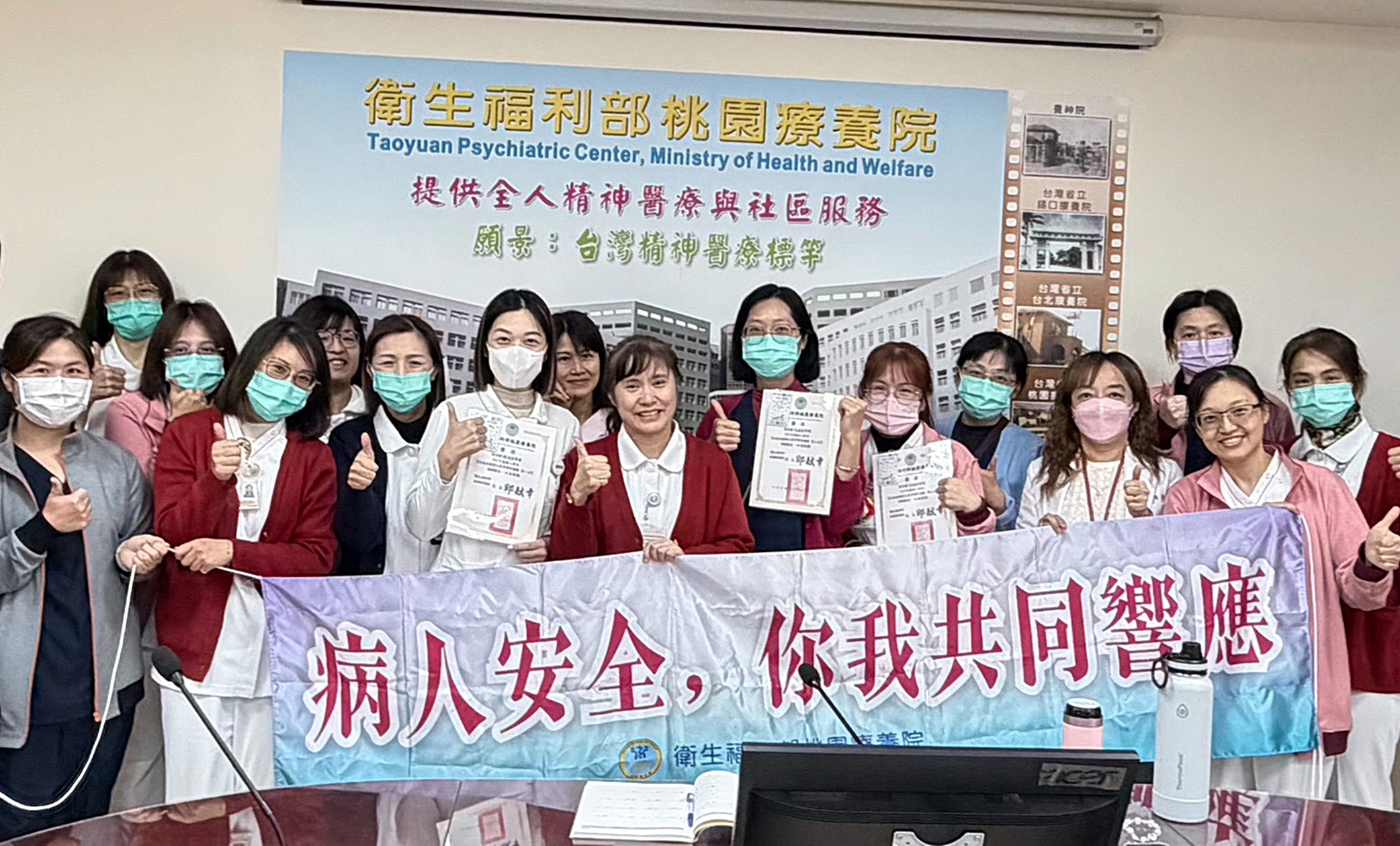 桃療長期鼓勵同仁安心通報,將錯誤經驗轉化為團隊共同學習的教材,進而提升整體照護品質,未來將持續結合行政與臨床團隊力量,深化病人安全文化,提供民眾更安全、安心且具品質的精神醫療照護服務,守護每一位病患的就醫安全。