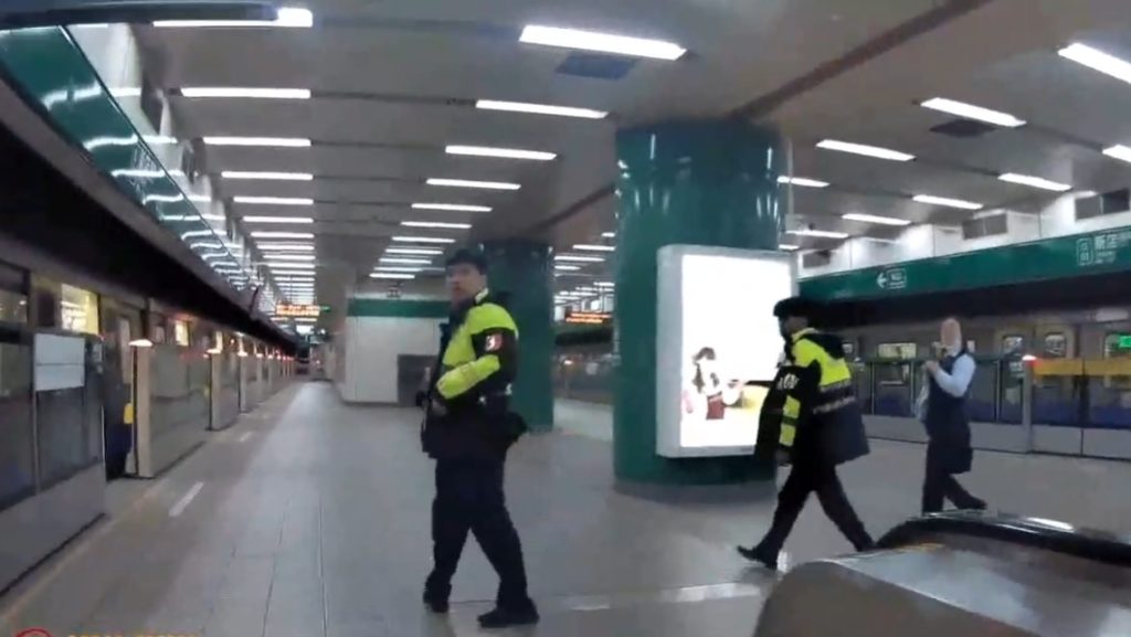 現場警力保持警戒,持續於捷運站體周遭搜尋、戒備,並立即成立專案小組調閱車廂及月台監視器畫面查證,無發現符合特徵之對象。