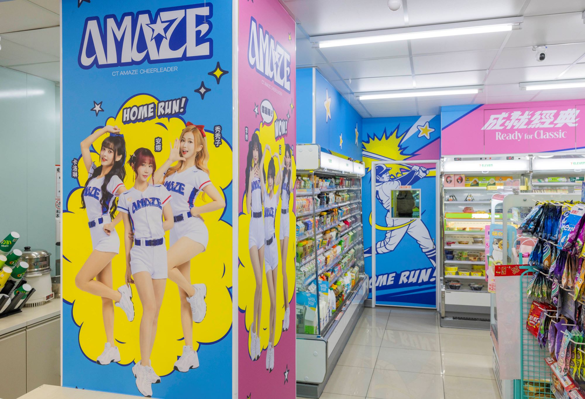7-ELEVEN搶攻全民棒球打卡熱潮,自2月10日起首次於大巨蛋周邊「巨蛋門市」打造期間限定「棒球主題店」於,並以36位CT_AMAZE女孩為主題進行包店設計。
