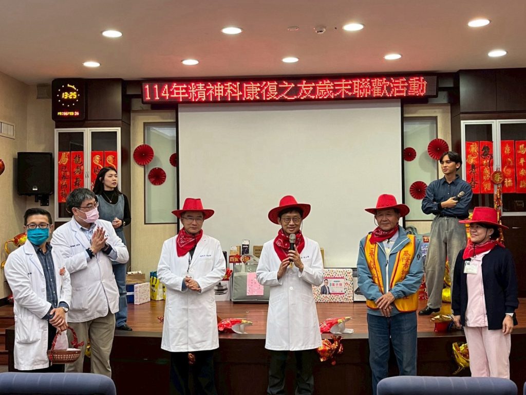 院長林三齊向病友祝賀金馬年新年快樂,並發送賀年小卡,氣氛溫馨感人。接著由病友帶來舞蹈表演,在音樂與舞步中展現自信與活力,呈現平日復健訓練的成果。活動中並安排互動遊戲,現場笑聲不斷,最後由精神科病房主任張迺榮抽出頭獎除濕機。