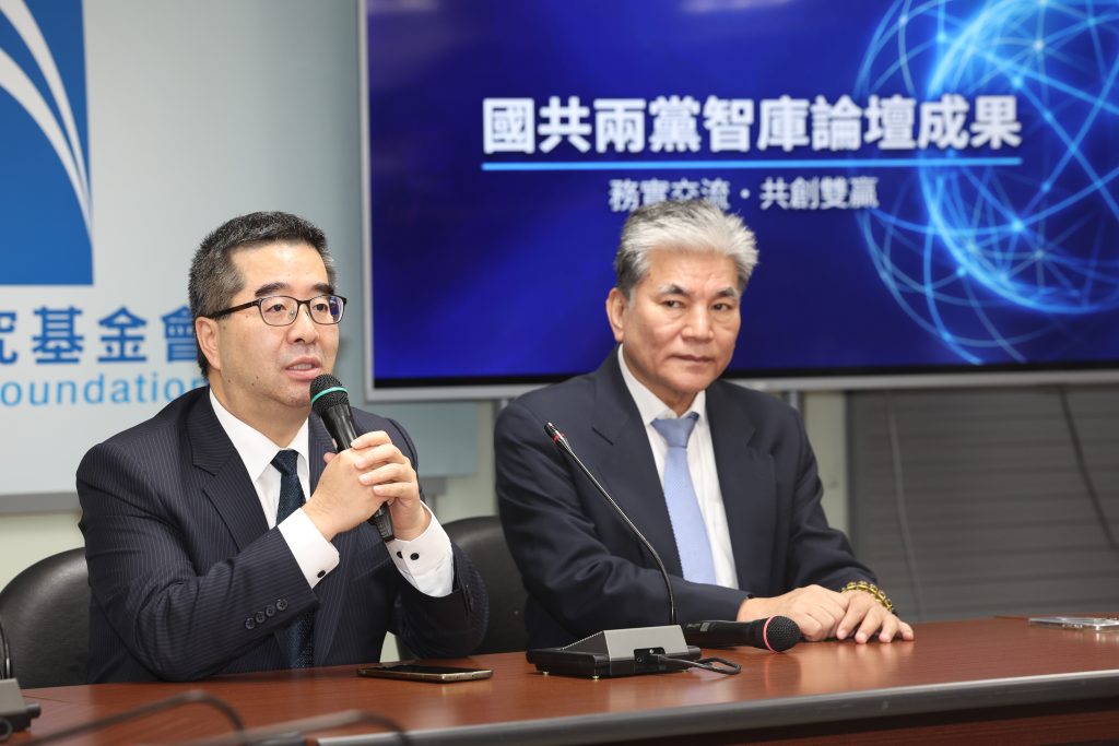 國民黨副主席蕭旭岑與國家政策研究基金會副董事長李鴻源十日開記者會說明「兩岸交流合作前瞻論壇」成果。蕭旭岑表示,國民黨此行是幫台灣產業找出路、幫台灣民眾找和平,不擔心被抹紅。