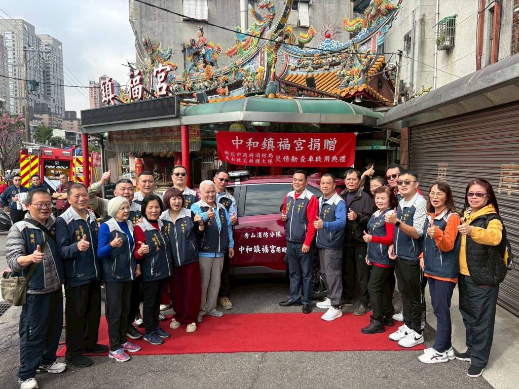 新北市中和鎮福宮秉持「取之於社會 用之於社會」守護鄉里精神,於今(11日10時假鎮福宮前廣場,捐贈新北市消防局第七救災救護大隊秀山分隊災情勘查車1輛。捐贈儀式由中和鎮福宮委員會主任委員游証揚代表致贈,消防局則由局長陳崇岳代表受贈,同時回贈該廟感謝狀及紀念品,充分展現地方信仰團體回饋社會、守護家園的具體行動。