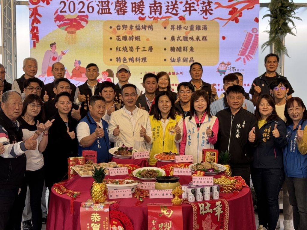 「溫馨暖南送年菜」活動,繼日前關懷斗南希望工場十桌年菜後,十一日包括台野畜產有限公司捐贈「台野幸福烤鴨」三八○份、昇樺食品有限公司「昇樺心靈雞湯」三八○份、鴨迷食品股份有限公司「鴨迷特色料理」三八○份,及紅燒筍干三層、花雕醉蝦、廣式臘味米糕、糖醋鮮魚等四道年菜,由斗南新尚豪宴會館大廚林寶中協助料理;另有丸芋堂國際餐飲股份有限公司加碼捐贈「清原仙草甜品」三八○份。斗南在地企業世祥汽材製造廠股份有限公司、鴻茂工業股份有限公司、斗南台灣大哥大永安門市及善心人士共襄盛舉加入贊助年菜行列,讓斗南每個角落都被愛點亮、溫馨過好年。
