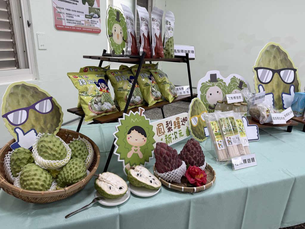 目前已媒合尚順食品、綠園牧場、福和生鮮及嘉農酒莊等業者向農民團體採購原料,開發鳳梨釋迦果丁、果泥、果餡、冰品及酒品等多元產品,拓展國內外市場;透過加工技術與冷鏈建置,除延長銷售期,也讓消費者一年四季都能品嚐鳳梨釋迦的美味。