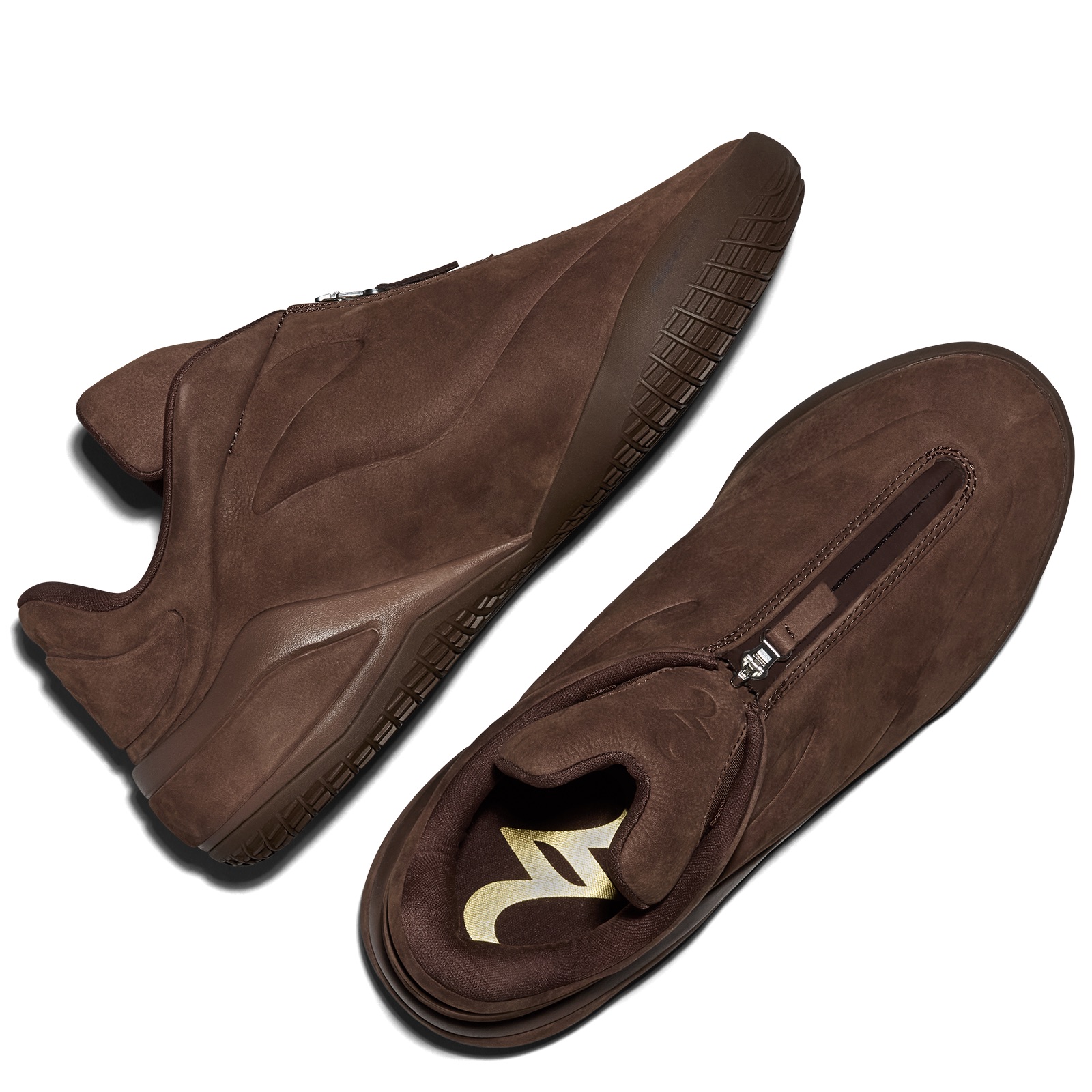 設計靈感深度汲取自Shai Gilgeous-Alexander 在球場上沉穩掌控比賽的領袖風範,並將其凝練為獨特的視覺語彙:鞋身呈現深邃的棕褐色調,選用優質翻毛皮革材質搭配立體結構覆蓋層,詮釋其從容內斂、游刃有餘的球場姿態,塑造出貫穿場內外的自信輪廓。