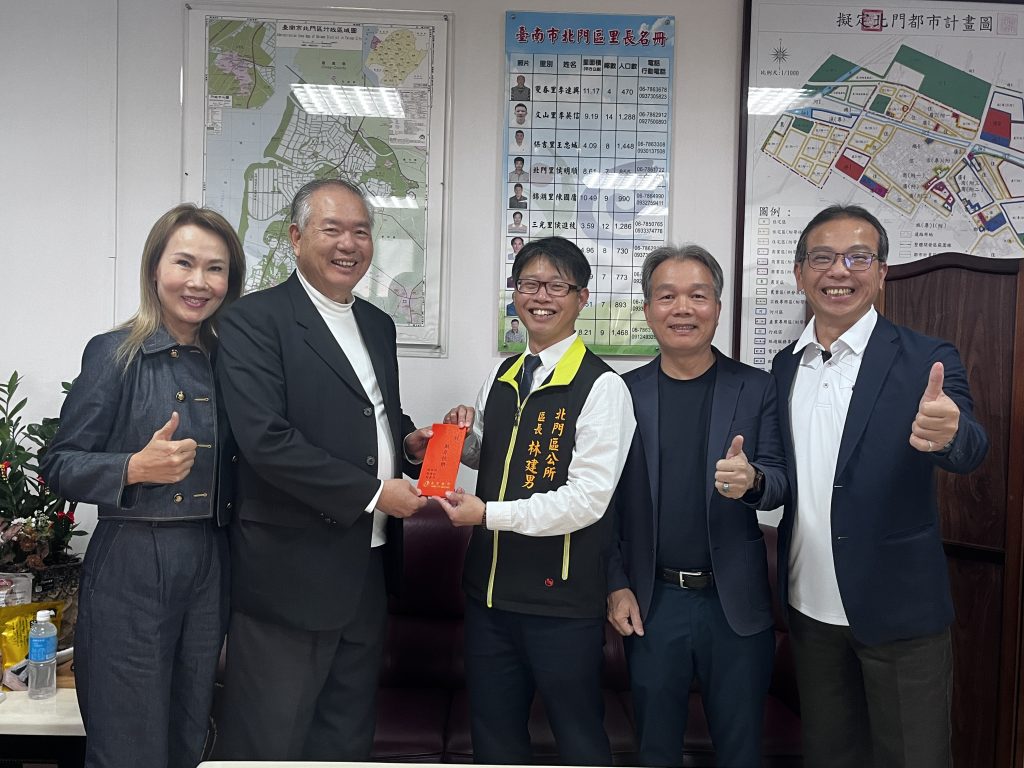 十一日上午,胡炳昆與夫人來到北門區公所致贈紅包,代表接受的北門區長林建男也回贈感謝狀,感謝企業寒冬送暖。林建男指出,感謝居中牽線促成美事的副局長洪頂力,更重要是穎霖集團的全力協助,不僅實質減輕弱勢家庭生活負擔,可以過個好年,期盼藉此拋磚引玉,號召更多社會力量投入公益行列。區公所持續結合民間資源,攜手守護在地弱勢族群,共同打造溫暖、有愛的社區環境。