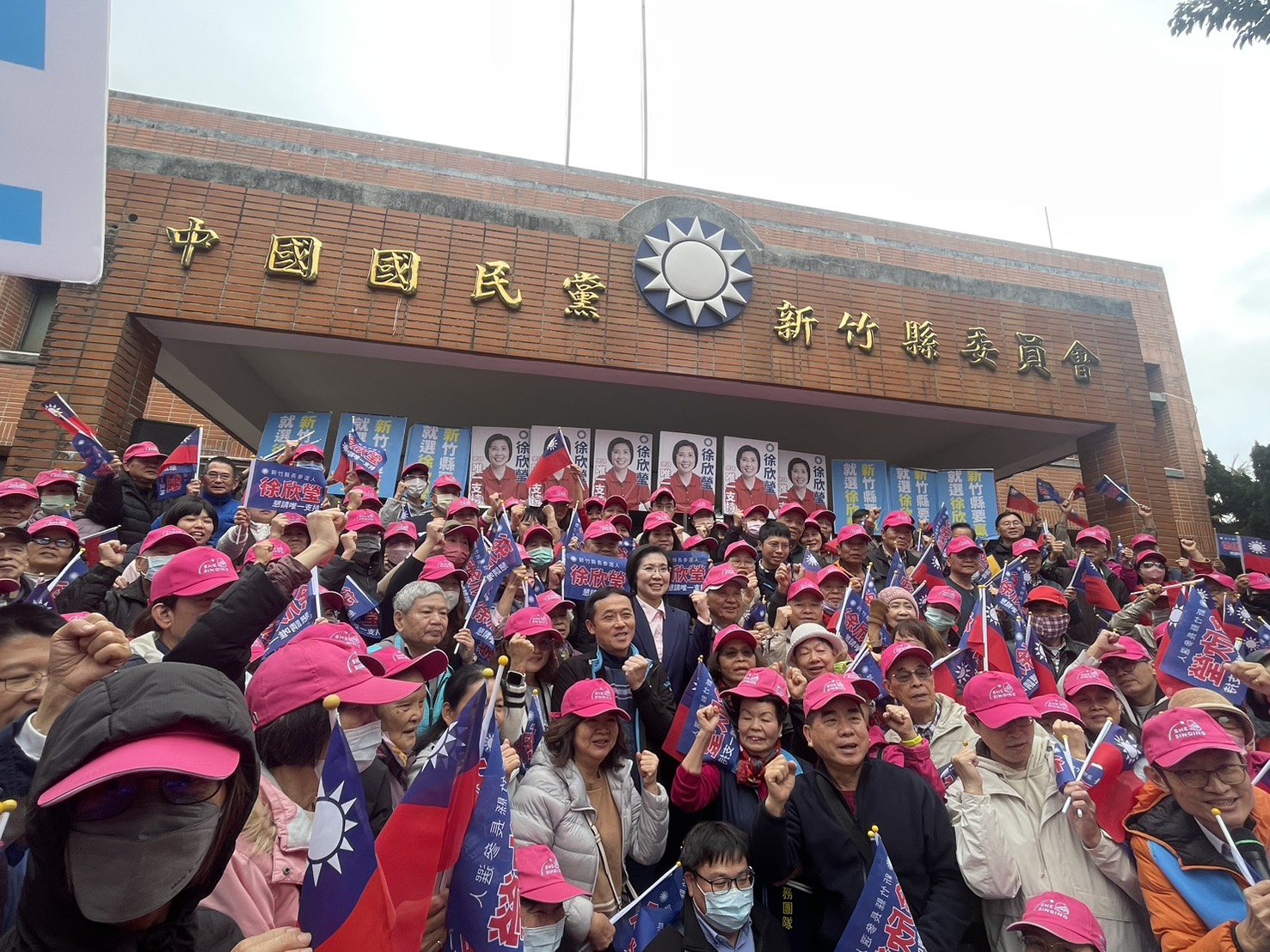 國民黨新竹縣長黨內初選,立委徐欣瑩十一日下午在五百多名支持者簇擁高喊「新竹縣要贏,就選徐欣瑩」前往新竹縣黨部登記,並強調她要推動新竹縣雙AI的決心。