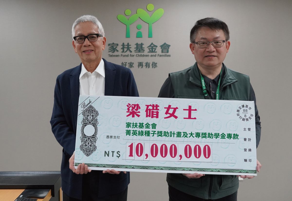 寶璽建設創辦人梁德煌代表其已故母親梁碏女士,捐贈新台幣一千萬元善款給家扶中心專用於「菁英綠種子獎助計畫」及大專獎助學金,以扶持經濟弱勢但具潛力的學子。這筆源自梁碏女士遺產的捐贈,不僅象徵一份跨越生命長度的無私善行,更將對至親的懷念,昇華為反饋社會的巨大善意,讓這份大愛在人間綿延持續。