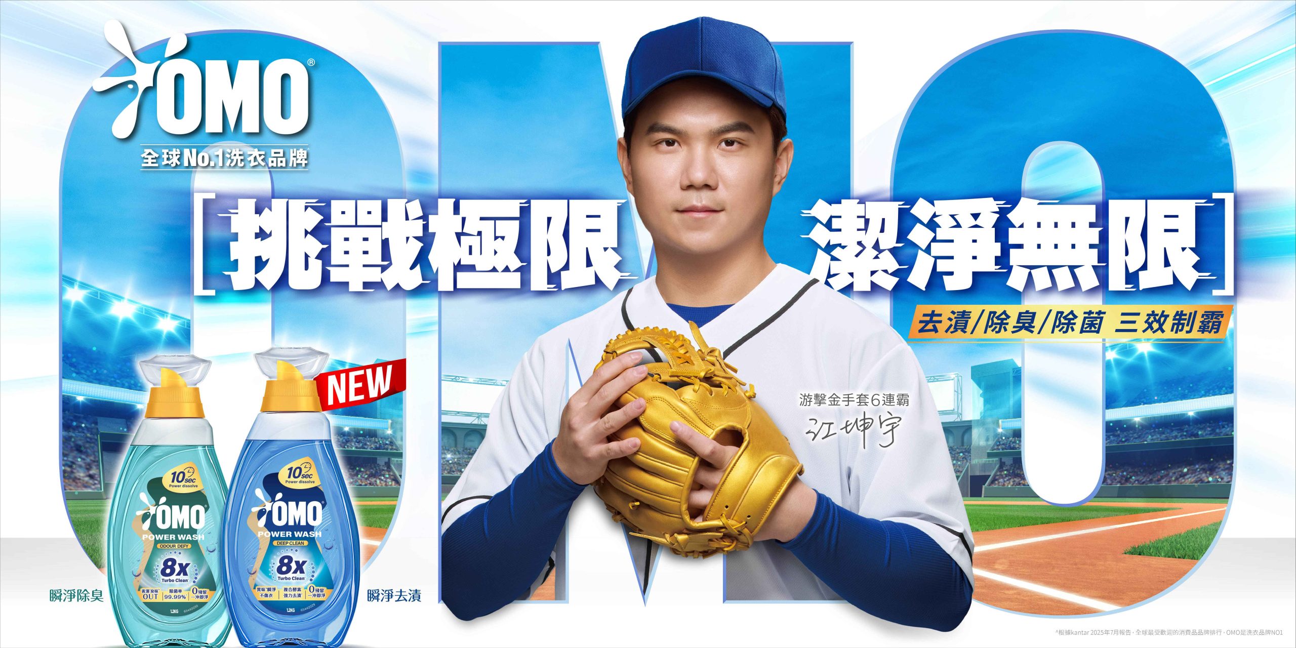無論是熱血的室內或戶外運動,還是日常的忙碌奔波,衣物上的汗漬、頑垢與難聞臭味總是令人頭痛。全球洗衣知名品牌OMO全台上市,抓準現代人講求高效與質感生活,同時顧及健康的運動需求,即日起推出OMO 極淨速溶高效洗衣精 瞬淨去漬及瞬淨除臭 瓶裝與補充包於各大通路開賣!根據市調公司 Kantar 2025年7月發布的全球品牌足跡報告,全球最受歡迎的消費品品牌排行中,OMO為洗衣品牌之冠,是長年立足海外市場廣受喜愛的洗衣首選,而這股席捲國外的潔淨旋風現正式在台引爆!隨著經典賽熱潮來襲,OMO台灣攜手「游擊金手套6連霸」江坤宇擔任品牌代言人,共同見證「去漬、除臭、除菌」三效制霸的洗淨革命,邀請全台球迷一起為江坤宇與中華隊加油!