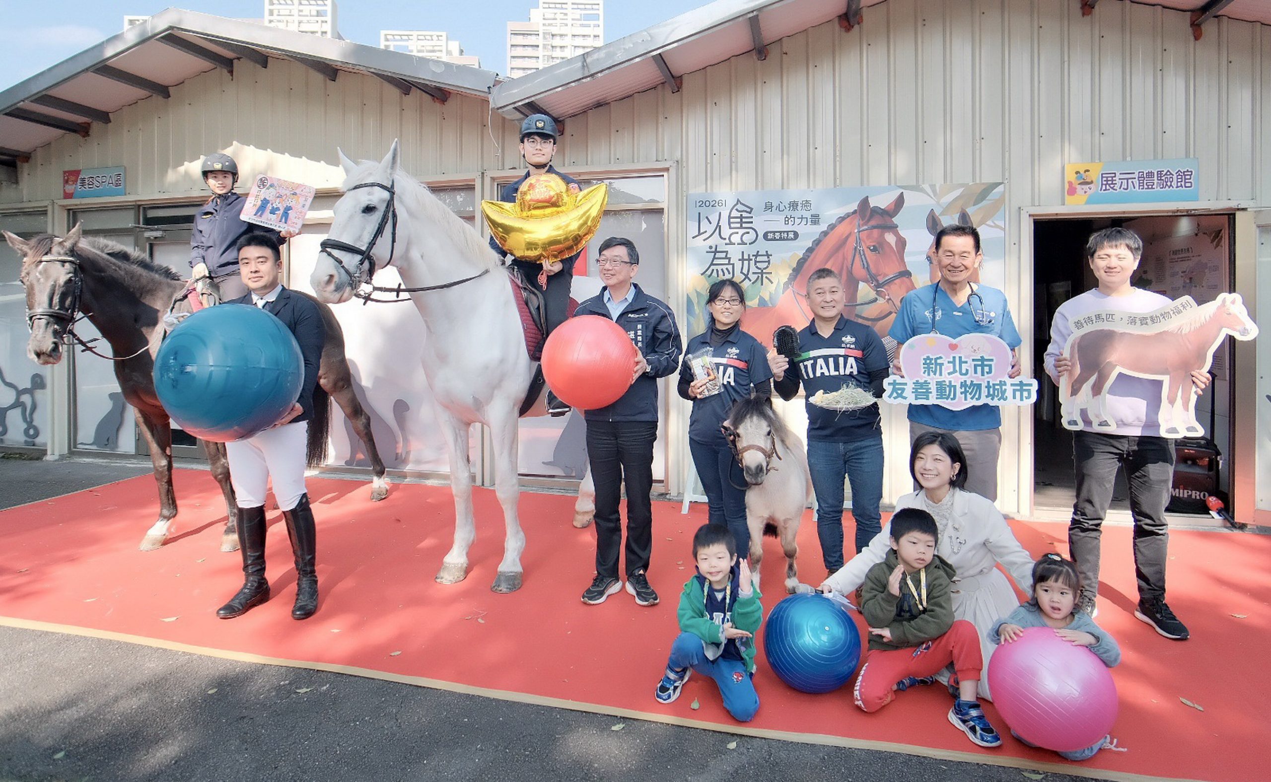 迎接馬年到來,新北市府動保處於板橋毛寶貝教育園區推出「以馬為媒:身心療癒的力量新春特展」十二日揭幕;透過馬匹行為解析、醫療照護分享及多元互動體驗,引領民眾深入認識馬匹習性與動物福利理念,期盼藉由展覽推廣生命教育,傳達「動物療癒人,人也療癒動物」的關懷精神。特展至四月三十日,歡迎大小朋友前往參觀,一同感受馬帶來的溫暖與力量。