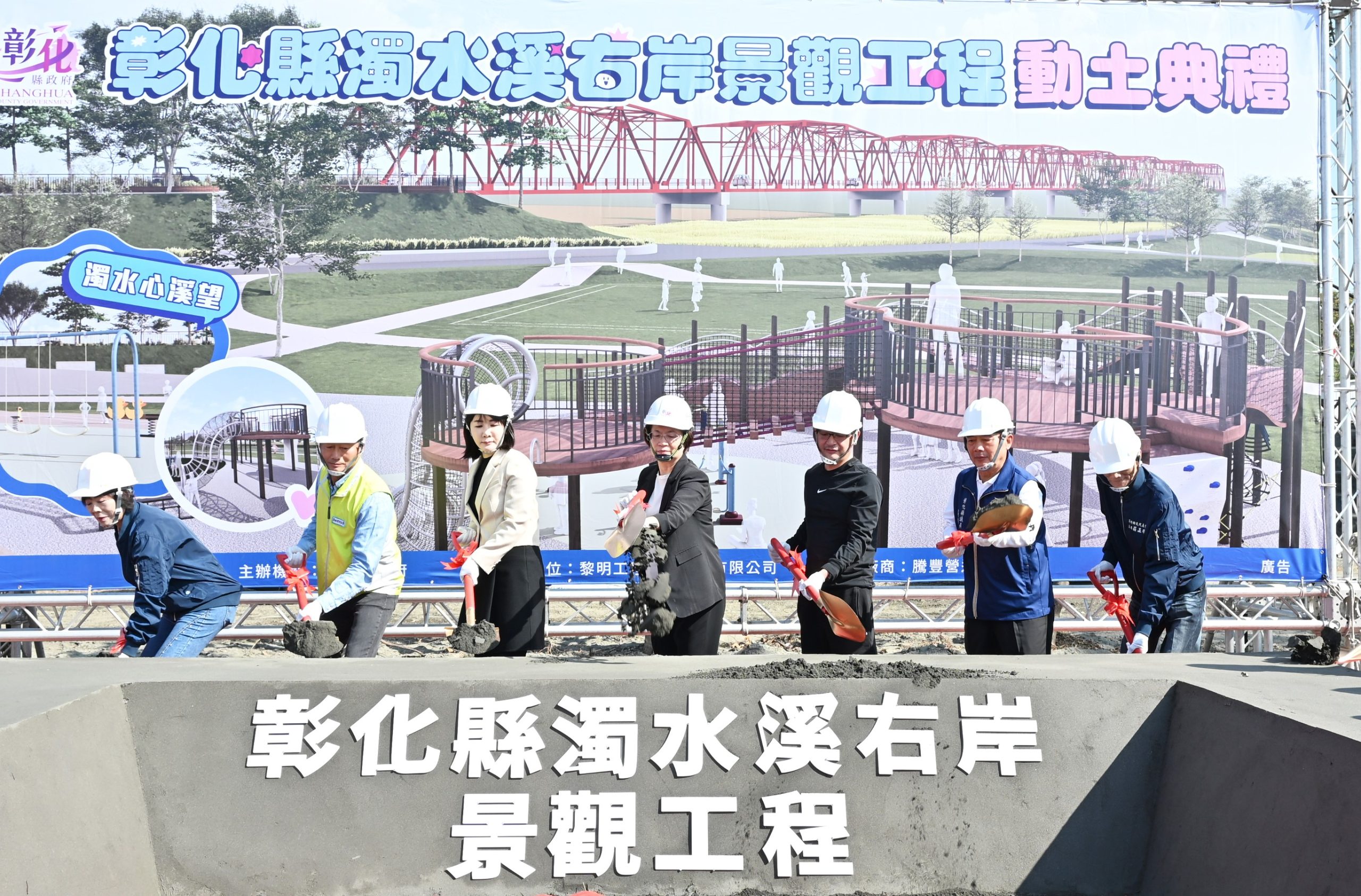 彰化縣濁水溪右岸景觀工程十二日舉行開工動土典禮,工程內容主要改善濁水溪右岸整體景觀並設置休憩設施,打造兼具生態、歷史、休憩與觀光機能的水岸風光,提供遊客與鄉親更友善且舒適的休閒場域。