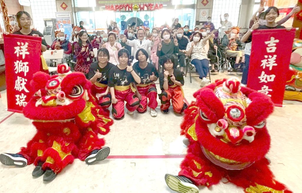 高雄榮民總醫院台南分院農曆新年前夕舉辦馬年春節聯歡活動,結合一般與精神護理之家住民共同參與,邀請永仁高中國中部慈輝醒獅團表演祥獅獻瑞,象徵迎春納福,熱鬧鑼鼓聲帶動全場氣氛,傳遞節慶喜悅與祝福,也寓意新的一年平安順遂。