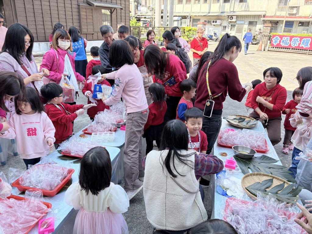 活動以象徵祈福平安的傳統米食「紅龜粿」為主軸,安排親子共同揉製米糰、壓模成型,並結合「春聯拓印」創作,讓孩子在做中學、玩中學,認識年節文化與祝福意涵,活動當日,蔡文益親自加入活動,和幼兒一起搓揉米糰、壓模製作紅龜粿,與孩子親切互動、共享創作樂趣。
