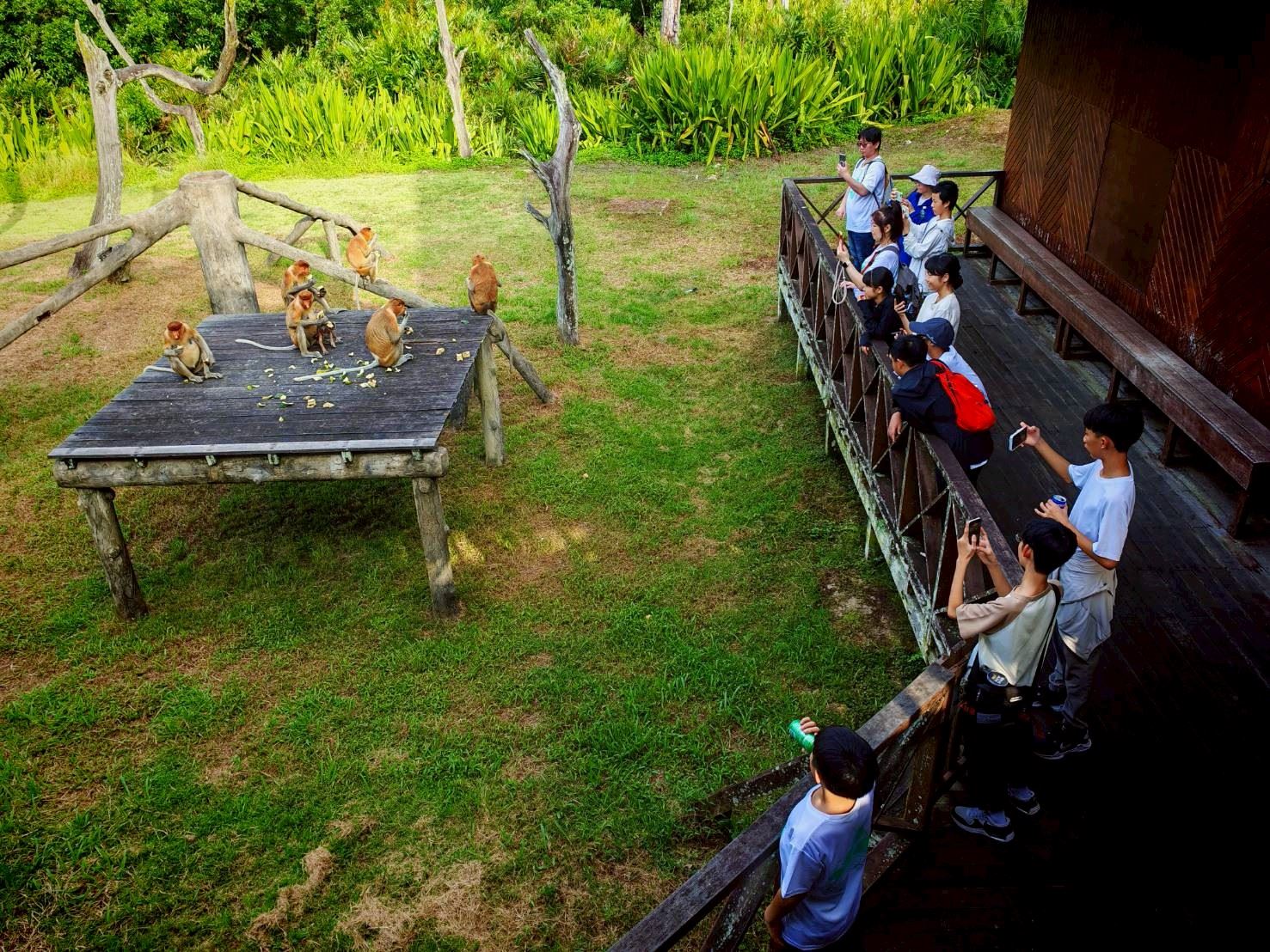 竹縣府表示,本次交流前半年即透過線上教室與海外夥伴建立穩定互動基礎,實體交流階段則前往沙巴山打根地區,進行校際交流與生態探訪。學生們除入班進行文化簡報、語言互動與團隊活動外,亦實地走訪馬來熊、紅毛猩猩及長鼻猴保育中心,並參與夜間雨林觀察與生態課程,在真實情境中深化對環境保育與全球議題的理解。