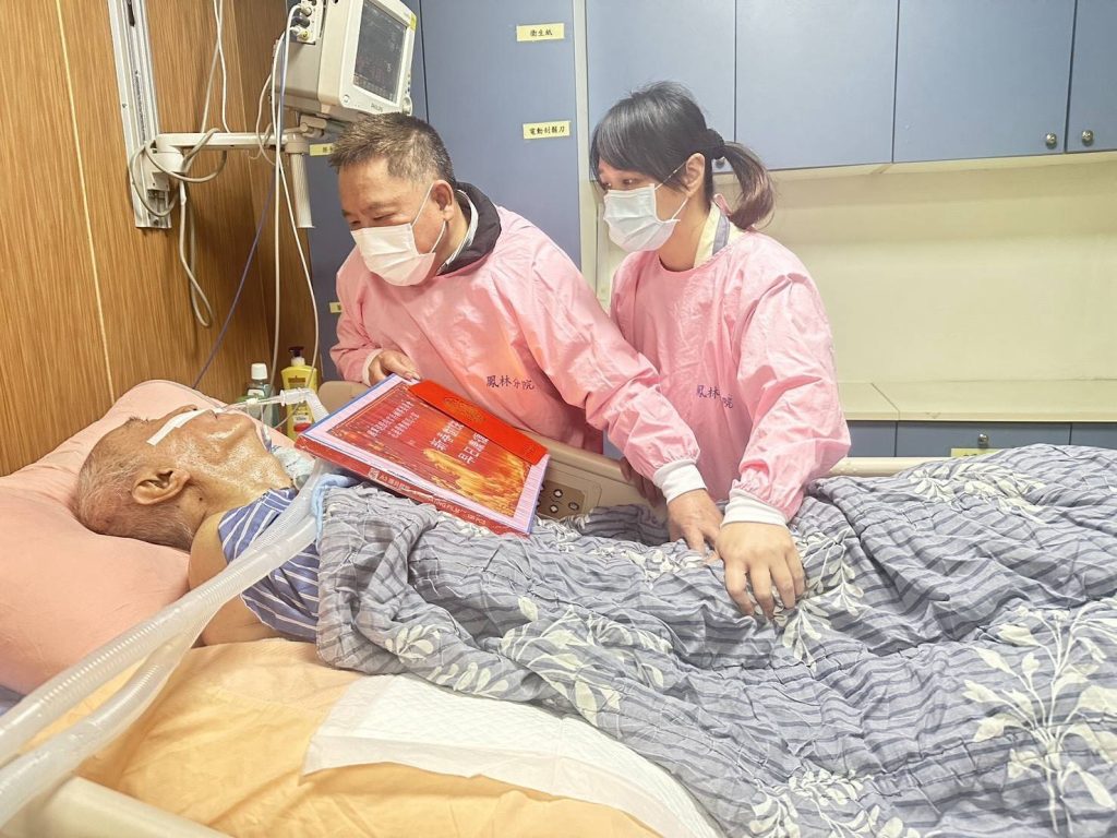 花蓮榮家特別於春節前夕前往各醫療院所探視住院榮民,傳遞來自榮家的關懷與新春祝福。(花蓮榮家提供)