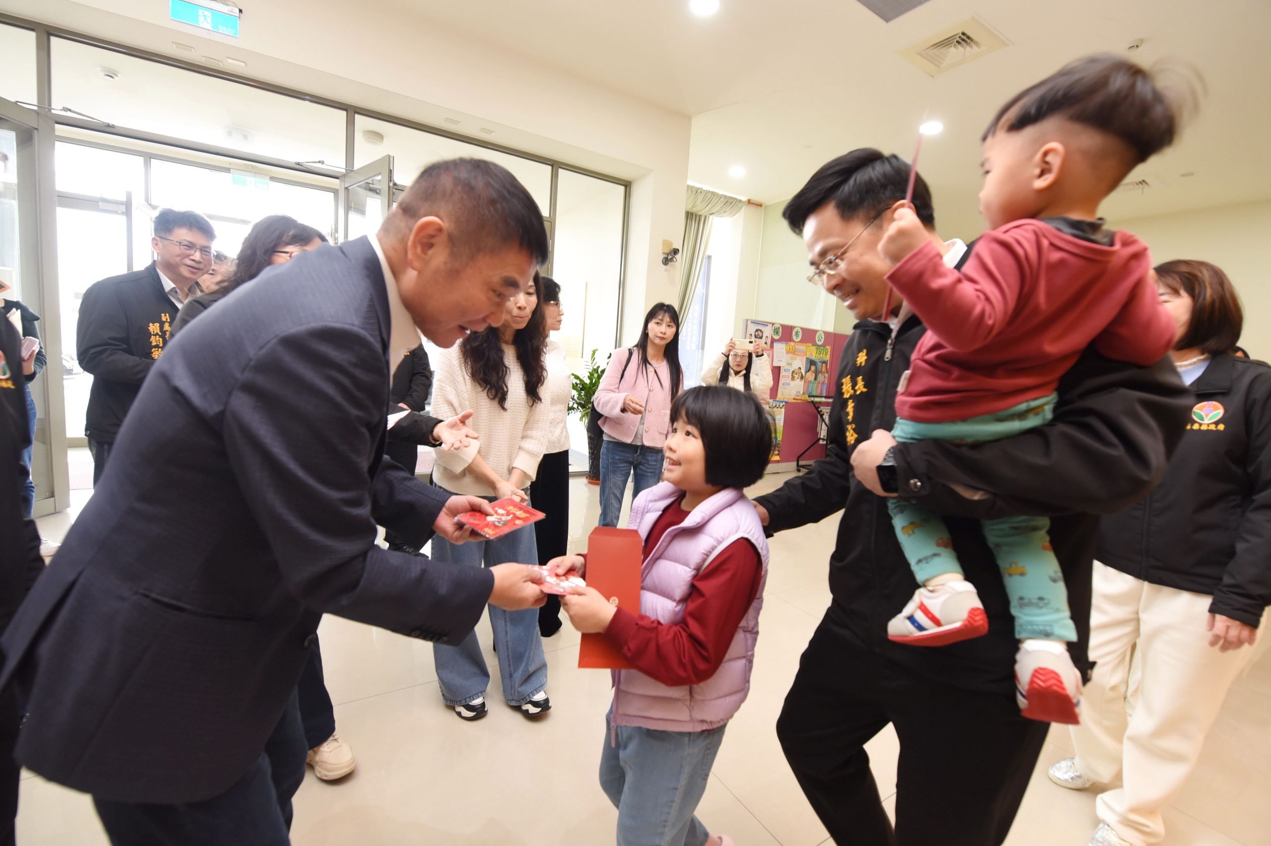 由於明年是馬年,鍾東錦也親自發給每位員工一個「馬年吉祥」福袋,裡面是一張印有奔馳駿馬的吉祥賀卡及十元硬幣,相當精緻應景,讓員工愛不釋手,員工拿到福袋也高興地給縣長伉儷祝賀新年快樂,還有員工自製一條小龍向縣長拜年,相當喜慶,也充滿客家地區年節氣氛。