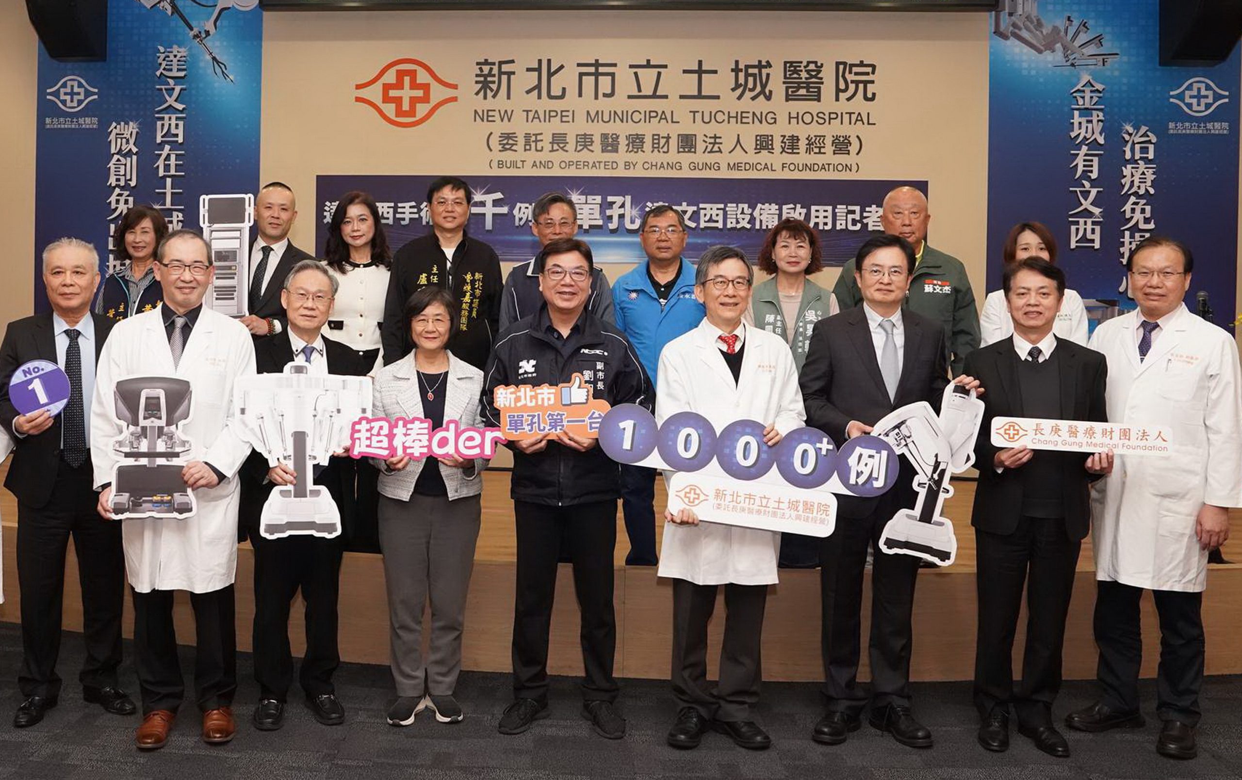 劉和然到場表示,土城醫院在短時間內突破千例達文西手術,充分彰顯新北市在高階醫療技術及整體醫療服務能量已躋身國際先進水準,盼持續深化先進醫療技術,提供市民更安全、精準且友善之治療選擇,讓市民免去舟車勞頓奔波外縣市,實踐「在地醫療」政策。