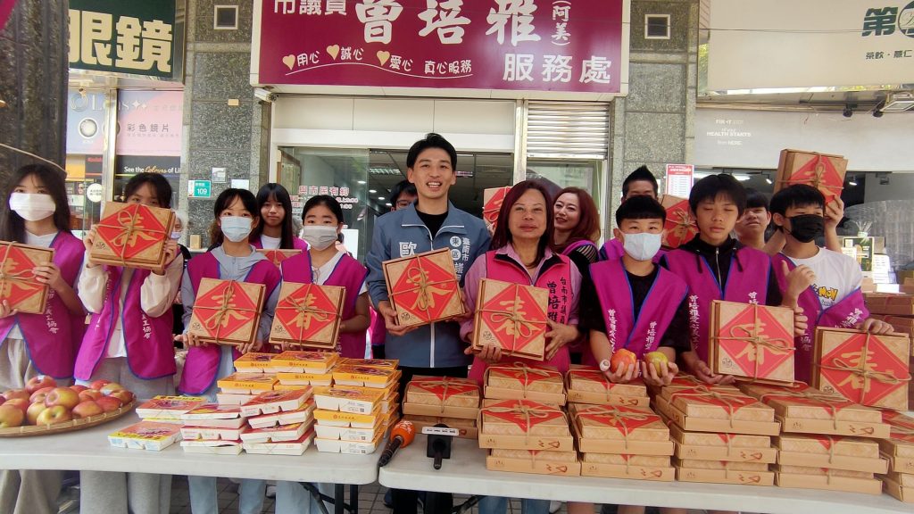 曾培雅和服務處執行長歐政豪一起透過春字蘿蔔糕,傳遞年味與關懷。中餐助童計畫自推動以來,始終秉持「窮不能窮教育,餓不能餓孩子」初心,期盼透過實際行動守護孩子的基本需求。曾培雅說,今年底議員選舉,將交棒給兒子歐政豪,這項服務與關懷社會的活動,也將持續下去,為弱勢家庭孩子補足成長所需力量。