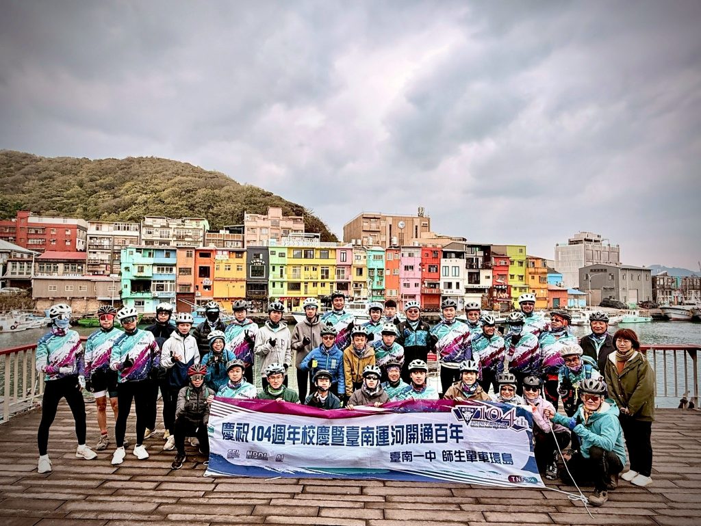 在「一0四週年校慶師生單車環島校際交流」活動中,由校長廖財固領軍,四十五位師生與校友自二月四日清晨出發,歷經寒流、大雨與長途騎乘考驗,於十二日平安返校。