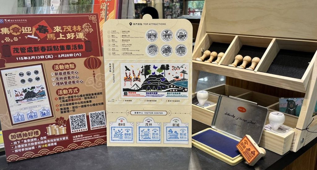 茂管處表示,此次新推出之紀念戳章內容豐富,包含結合轄區六處代表性景點戳章、三組年度活動主題套印章,以及新威、茂林及禮納里三座遊客中心各自專屬特色戳章;各式紀念戳章結合轄區自然景觀與在地文化意象進行設計,套印章亦可拼湊出完整圖案,兼具紀念性與收藏價值。透過多樣化戳章設計與集章活動串聯各主要旅遊據點,兼具紀念性、趣味性與導覽功能,為春節走春行程增添互動體驗。