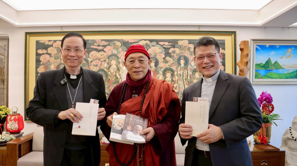 行程圓滿之際,雙方互贈禮物傳遞情誼,鍾總主教致贈神父傳記與禮盒,心道法師則回贈新春墨寶、特選茶禮及《靈性即生態》專書,共同期許:「愛是我們共同的真理,和平是永恆的渴望。」