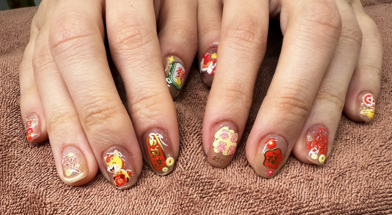 但也有年輕人喜歡生肖或有創意的圖形,再結合開運象徵,讓美甲更具個人特色。比如今年丙午馬年,Q版的馬年圖案也飛上甲片。