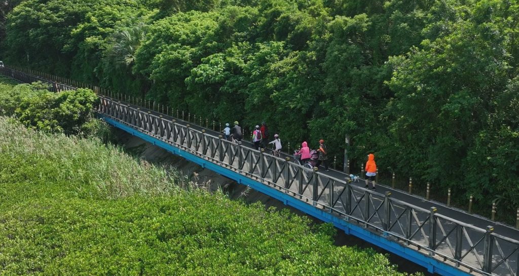 高灘處表示,新北河濱自行車道民眾可依喜好暢遊「八里左岸‧金色水岸自行車道」、「大漢溪自行車道」、「二重環狀自行車道」、「新店溪自行車道」及「基隆河自行車道」等五大經典路線外,各路線途經「熊猴森樂園」、「陽光運動公園遊戲場」、「親情河濱公園夢遊天地」、「八里文化公園遊戲場」及「汐止星際公園」等五大特色遊戲場,更是親子同遊、闔家共樂的熱門去處。