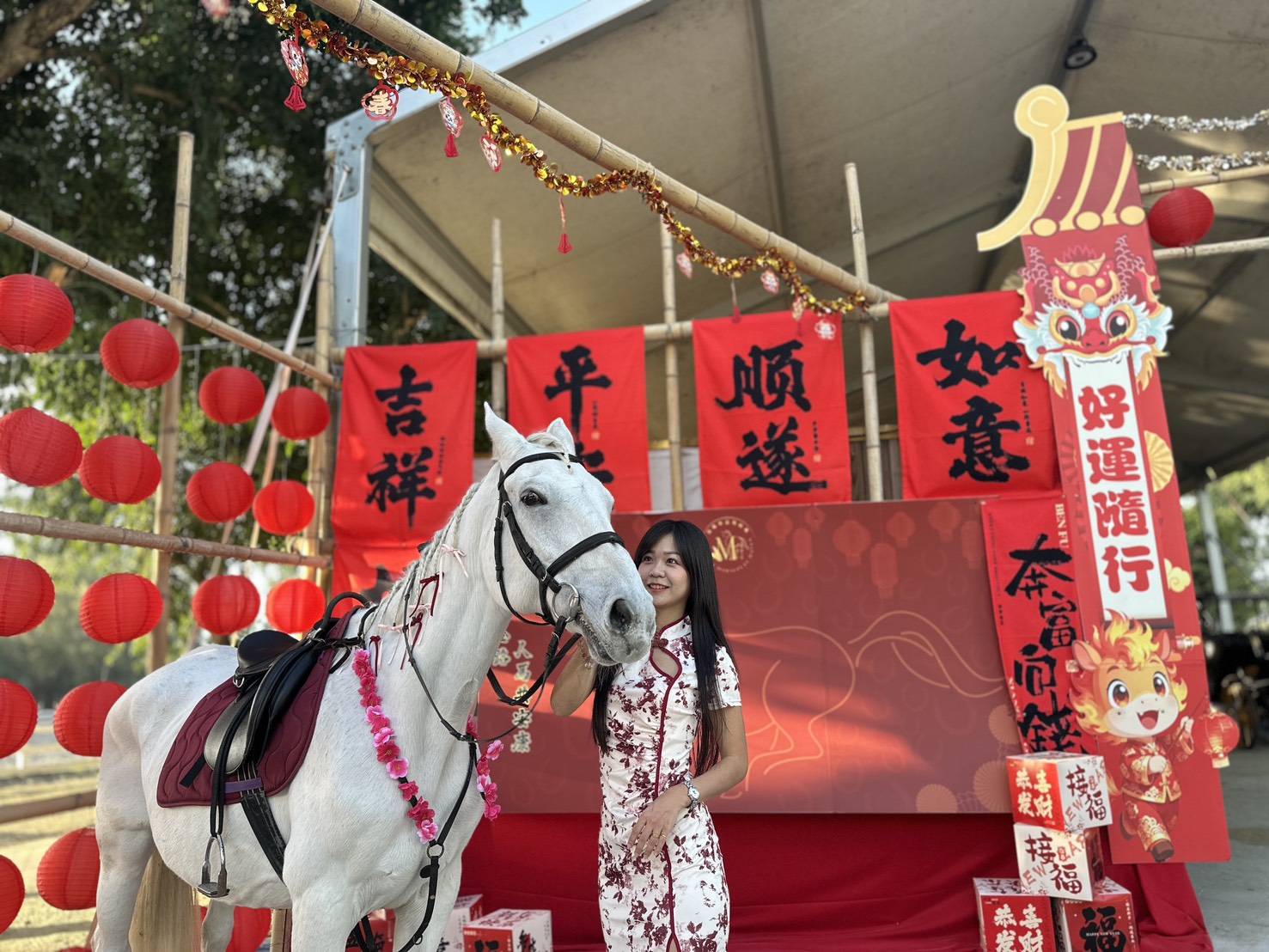 為貼合新年氛圍,台南市立馬術場也提供漢服拍照體驗,服裝租借服務僅開放官方LINE預約(租借費用六百元∕六十分鐘),現場提供不同年代及樣式古裝。馬術場現場也開放馬年專屬開運儀式,包括摸馬兒、敲馬蹄、祈福樹等,用滿滿儀式感開啟馬年。