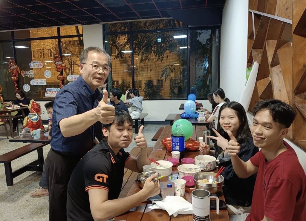 這場溫馨活動由學務處攜手國際處共同規劃,於十五日晚舉行,由林爵士校長親自主持。林校長除偕同夫人出席外,亦邀集高永男副學務長、生輔組長、宿舍業務承辦人以及長期在第一線陪伴學生生活起居的宿舍老師們一同參與,陪伴僑生共度小年夜。活動現場洋溢濃濃年味,師生互動熱絡,笑聲不斷。