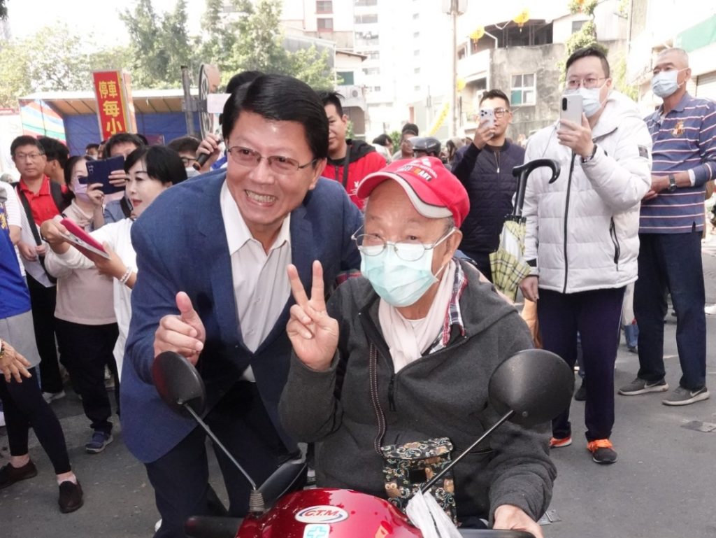 現場很多「謝粉」排隊與他合照,龍介仙強調: 台南市綠色執政已33年,是政黨輪替的時候了。今年11月28日請大家用選票讓政黨輪替美夢成真,讓台南市great again。