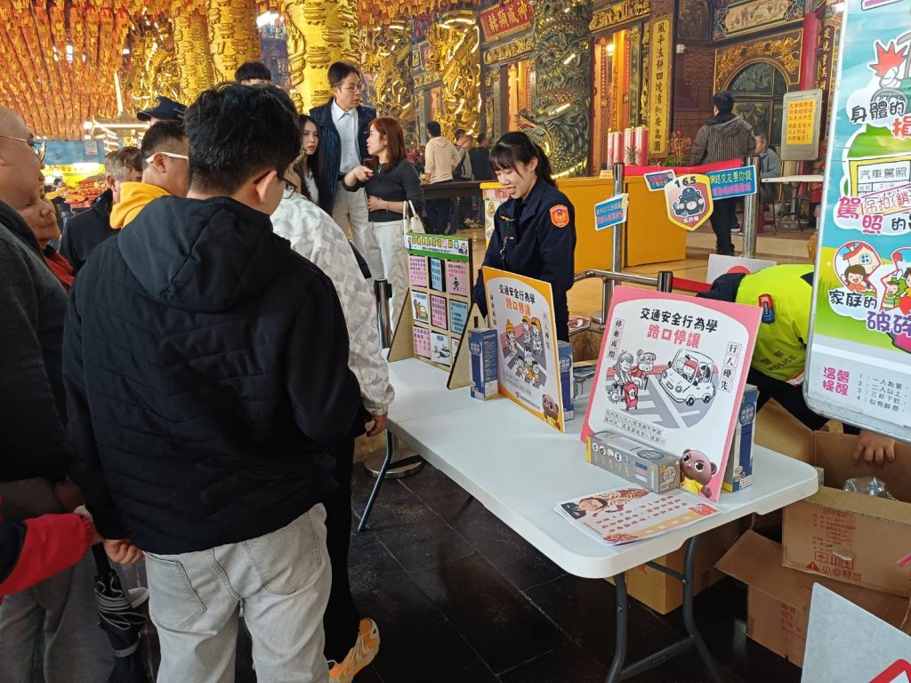 新店警分局預判將湧現大量人、車潮,為擴大交通安全宣導的深度與廣度,於2月21日前進五路財神廟舉辦宣導活動,強調「人本交通,停讓文化」、「車輛慢看停,行人安全行」及「喝酒不開車,開車不喝酒」等交安觀念,活動除員警宣導講解交通知識外,也贈送精美的交通安全宣導品,加強現場與民眾的互動。
