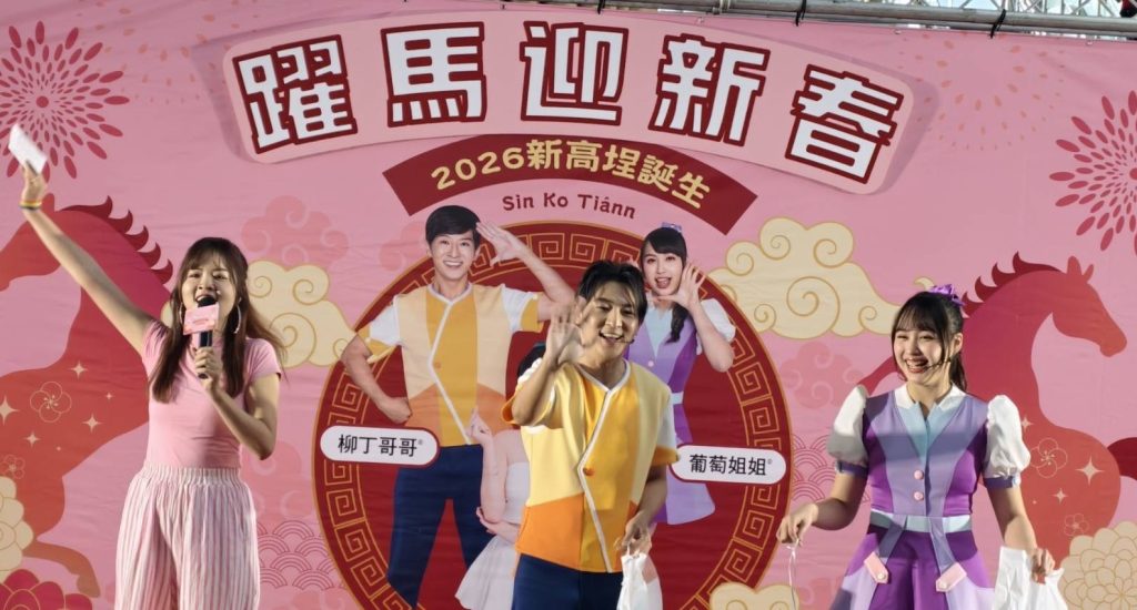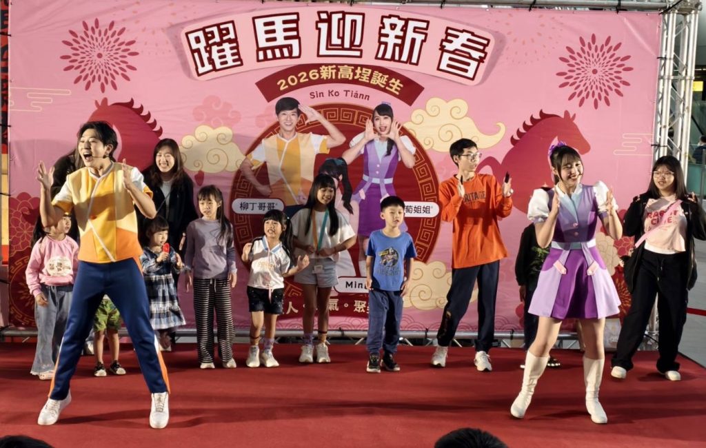 21日下午在高雄車站新高埕廣場揭開序幕熱力登場,柳丁哥哥與葡萄姐姐以活力唱跳炒熱氣氛,小朋友們跟著節奏揮舞雙手、大聲唱和,整個廣場瞬間化身大型親子歡樂派對,家長們紛紛以手機記錄溫馨畫面,為大年初五增添滿滿開心氛圍。