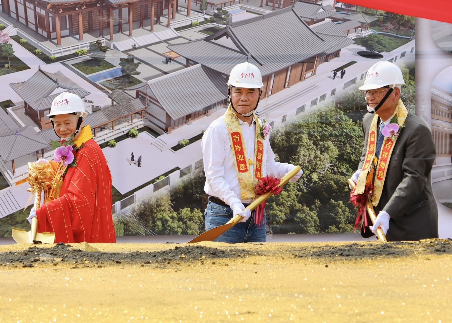 苗栗覺行寺動土正式開工,證達上人、縣長鍾東錦、立委邱鎮軍等貴賓雲集,一齊動土鏟出亞洲正法中心新基地的期許與希望。覺行寺興建籌備委員會提供
