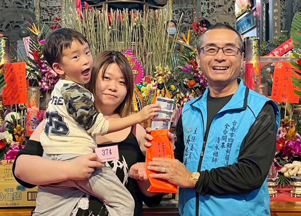 吳志祥說,「十五個聖筊」是清水祖師轉運金擲筊決賽歷年最佳成績,陳佳嫻抱回三十萬元頭獎,第二名李永棠、第三名黃昱翔,排名第四「八聖筊」有三人,經過PK賽,由陳秀梅勝出。