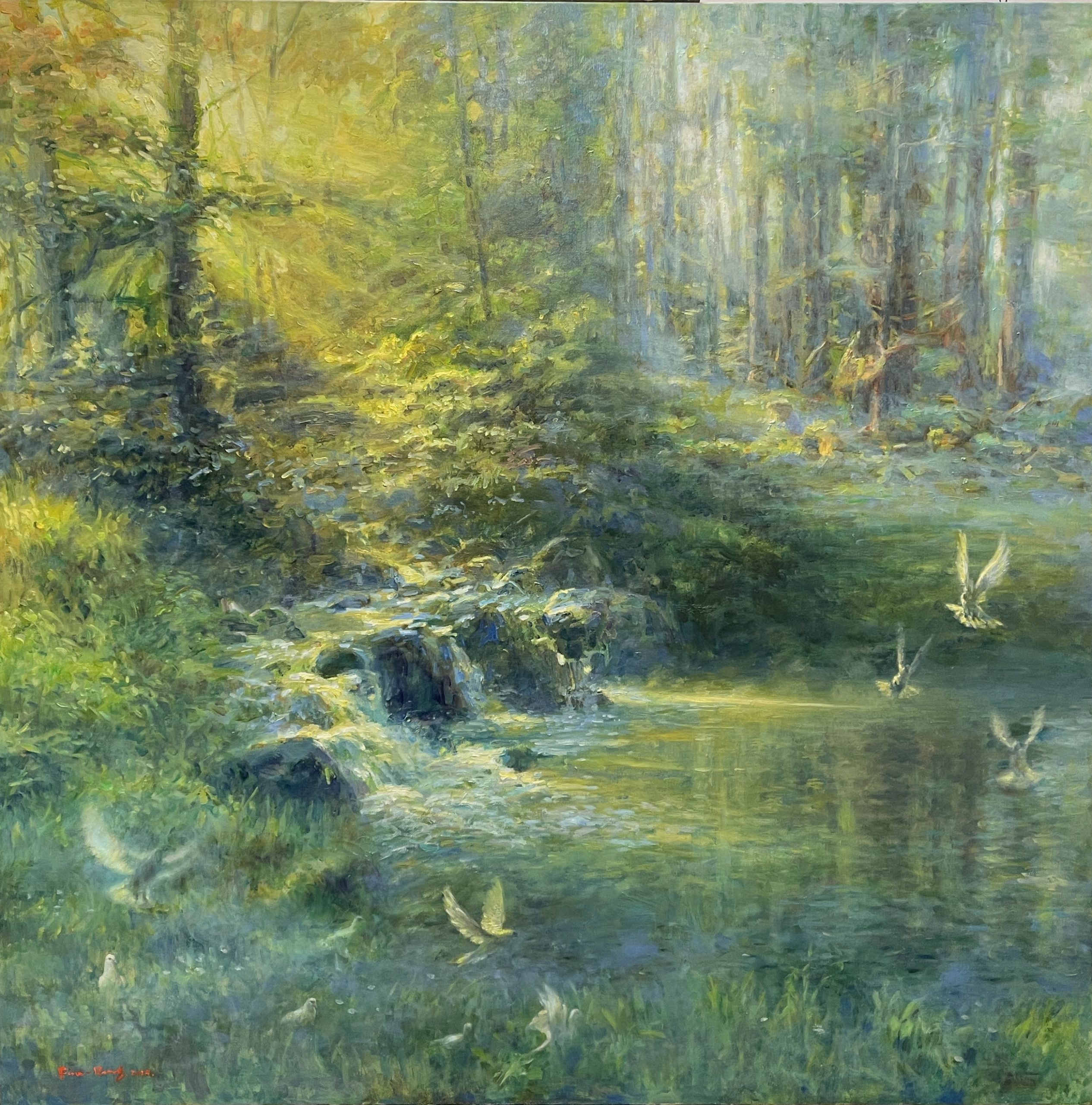 因了這束光的照耀,河灘上打盹的鵪鶉、白鷺和野兔,都不約而同地去尋覓夢之碎片。連夏日睡蓮,也忍不住洩露前世的秘密。