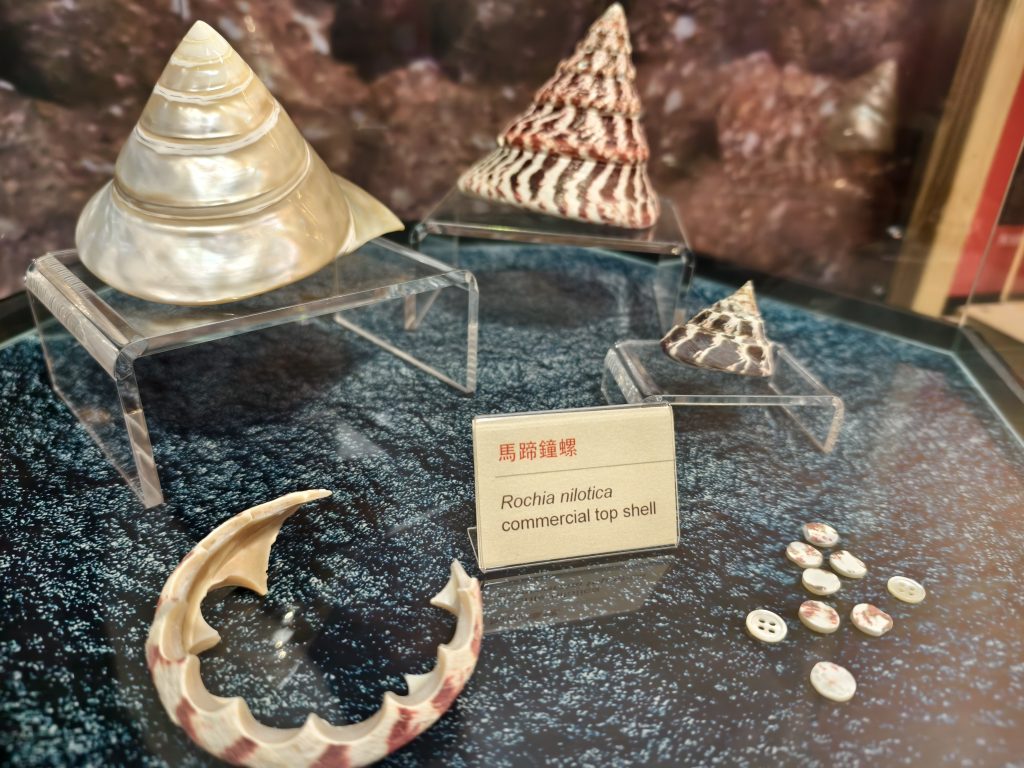 海科館研究典藏組陳麗淑主任指出,展覽亦呈現多種具有「馬」意象的貝類標本,例如馬蹄鐘螺、斑馬寶螺與斑馬渦螺等,說明殼形、花紋與顏色不僅具有美感,也與保護與偽裝等生存策略密切相關。透過近距離觀察,觀眾可發現每一枚貝殼如同自然界的指紋,展現個體差異與演化留下的痕跡。除了現生物種,特展同時展出來自遠古海洋的菊石、鸚鵡螺與海膽化石,呈現海洋生命跨越時間尺度的演變歷程;而被稱為「活化石」的馬蹄蟹(鱟),則讓觀眾理解古老物種如何延續至今,並在人類醫療安全檢測中扮演重要角色。透過典藏標本與科學解說的結合,展覽呈現自然史收藏在研究與教育上的價值。