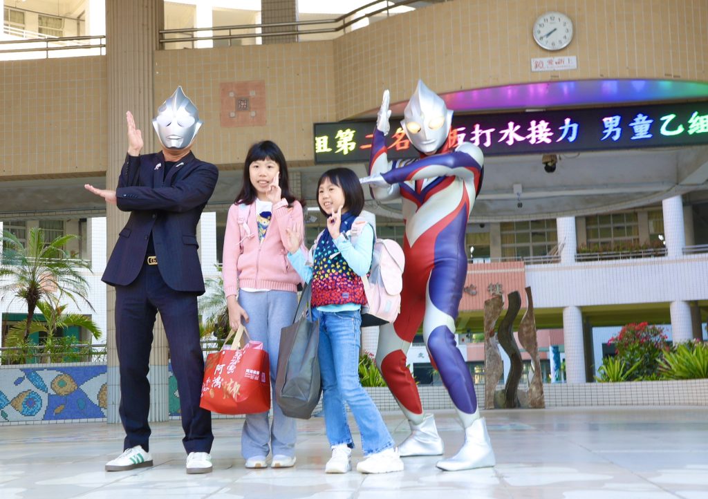 史上最長寒假結束,高雄市各學校二十三日開學,左營區新上國小校門口不只有熟悉的師長問候,更有「超人力霸王」驚喜降臨,以招牌光波與英雄姿態迎接孩子們重返校園,為新學期揭開充滿能量的序幕。