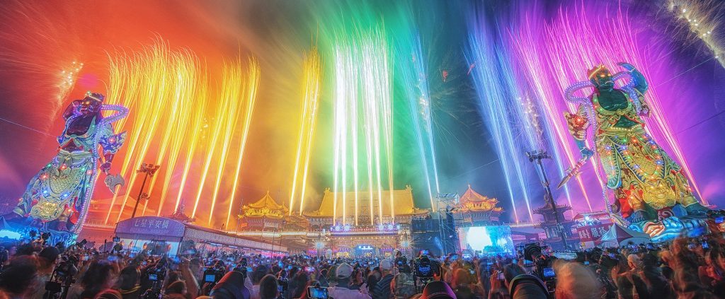 台灣民間習俗深信高空煙火及蜂巢炮能驅疫辟邪,並求財路興旺。聖母廟延續往年傳統,今年計畫以無人機啟動高空煙火秀,「金、銀、彩」三色系交織連結祈福光舟與海浪意象,承載媽祖作為海上守護神傳遞祝福能量,構築一場融合信仰、創新與祝福的空中花火盛典。
