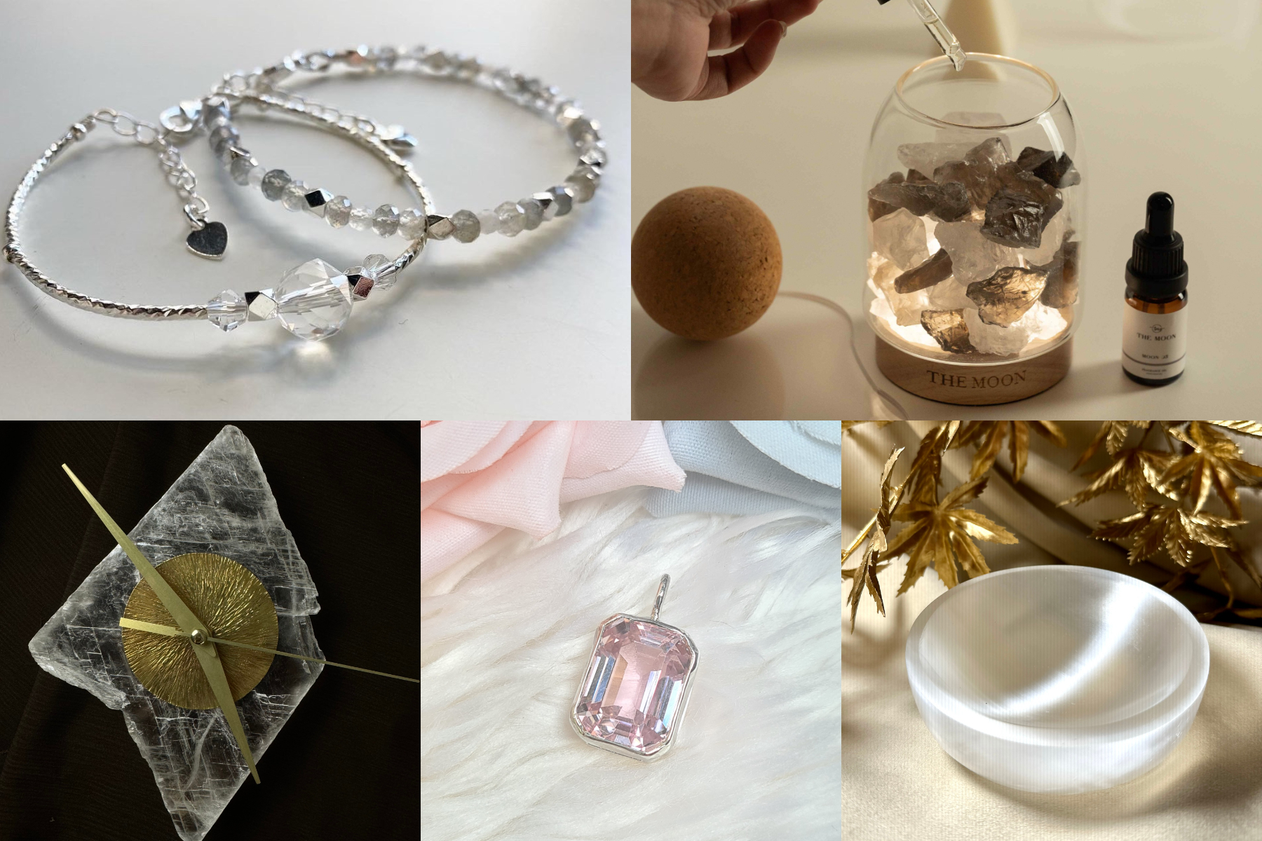 水逆最磨人的不是災難,而是那種說不上來的卡頓感,訊息讀了三遍還是回錯、開會關鍵時刻突然斷線,這時白水晶近乎透明的純粹,就像替混亂大腦按下Reset鍵,身為礦石界的能量過濾器,白水晶透過乾淨的設計語彙,讓留白成為整理思緒的第一步。若你的辦公桌總被待辦清單包圍,THE MOON的白水晶X茶水晶雙色水晶擴香燈,就像在公事夾擊下劃出的專注保護區,以暖光與微香拉你一把,提醒你在爆炸資訊中先深呼吸,再找回節奏出發;針對需要隨時切換開關的職場女性,MODOMODO的白水晶古巴項鍊,則帥氣地打破水晶嬌弱的印象,以粗獷鋼感與清澈礦石撞擊出對比,貼合在鎖骨間,守住那份不被情緒牽著走的底氣;追求細膩平靜的人,則適合Crystal LaVie的白水晶拉長石月亮石手鍊,多種透明礦石隨手腕擺動閃爍,當感性與理性擺盪、思緒變得黏膩時,低頭看這道光澤,就像抓到一條隱形的秩序線。有時候排除腦霧不必強行清空,只需透過外在美感,讓紛飛的思緒各自歸位。